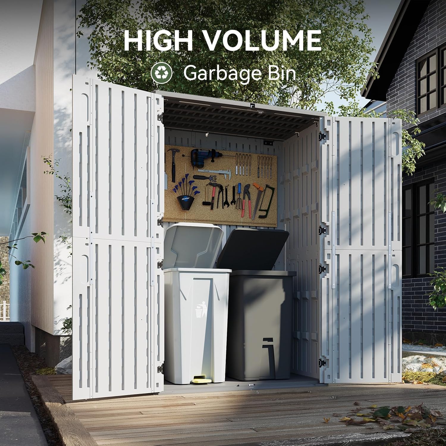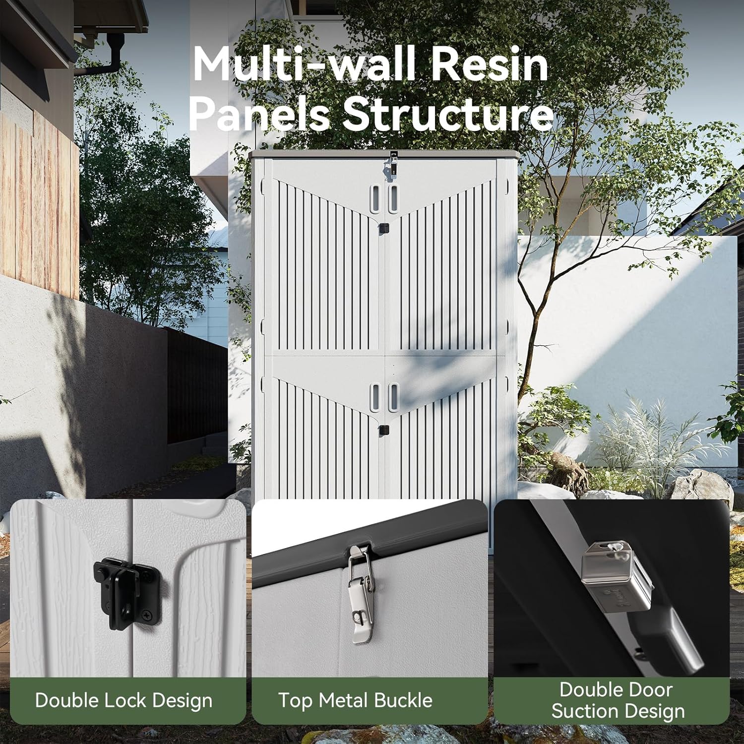 • 【Widened Anti-Toppling Base for Enhanced Stability】Designed with a widened bottom, this storage shed ensures superior stability, even on uneven ground. The top and bottom door suction system prevents accidental opening or closing, guaranteeing safety and durability during frequent use.