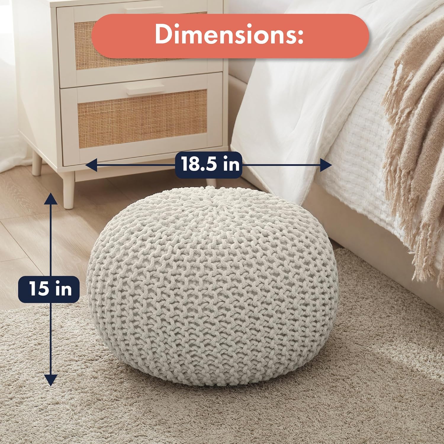 • 100% COTTON CORD: Enjoy the exceptional softness and lasting durability of our pouffe, meticulously crafted from 100% cotton. The material offers a comfortable place to rest your feet or sit, making it a perfect blend of style and practicality to enhance your daily comfort.