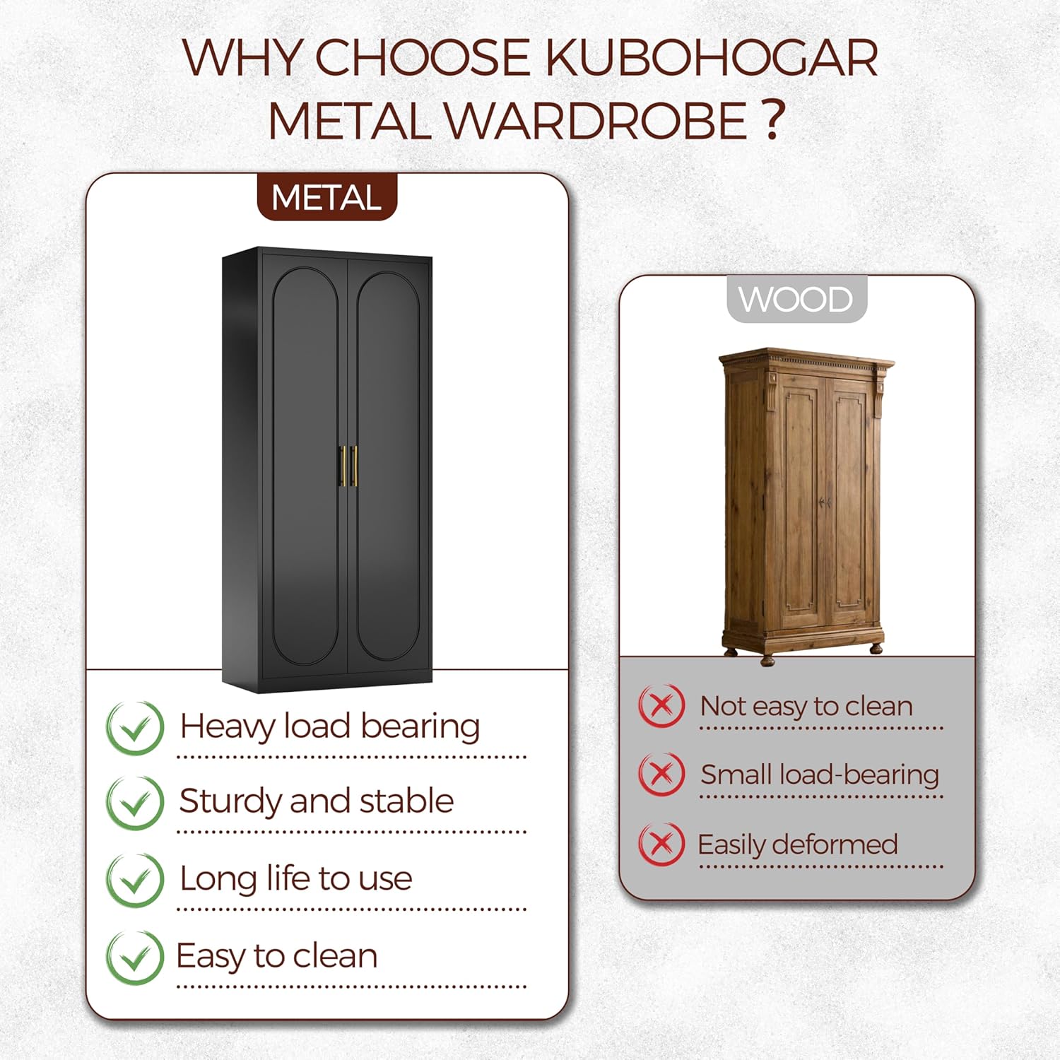 • High Quality Material: The black armoire wardrobe closet is made of thickened cold-rolled steel plate, which is strong and not easy to deform. The metal wardrobe cabinet is treated with environmentally friendly powder coating, which is resistant to moisture, corrosion and rust, and is more durable than wooden cabinets.