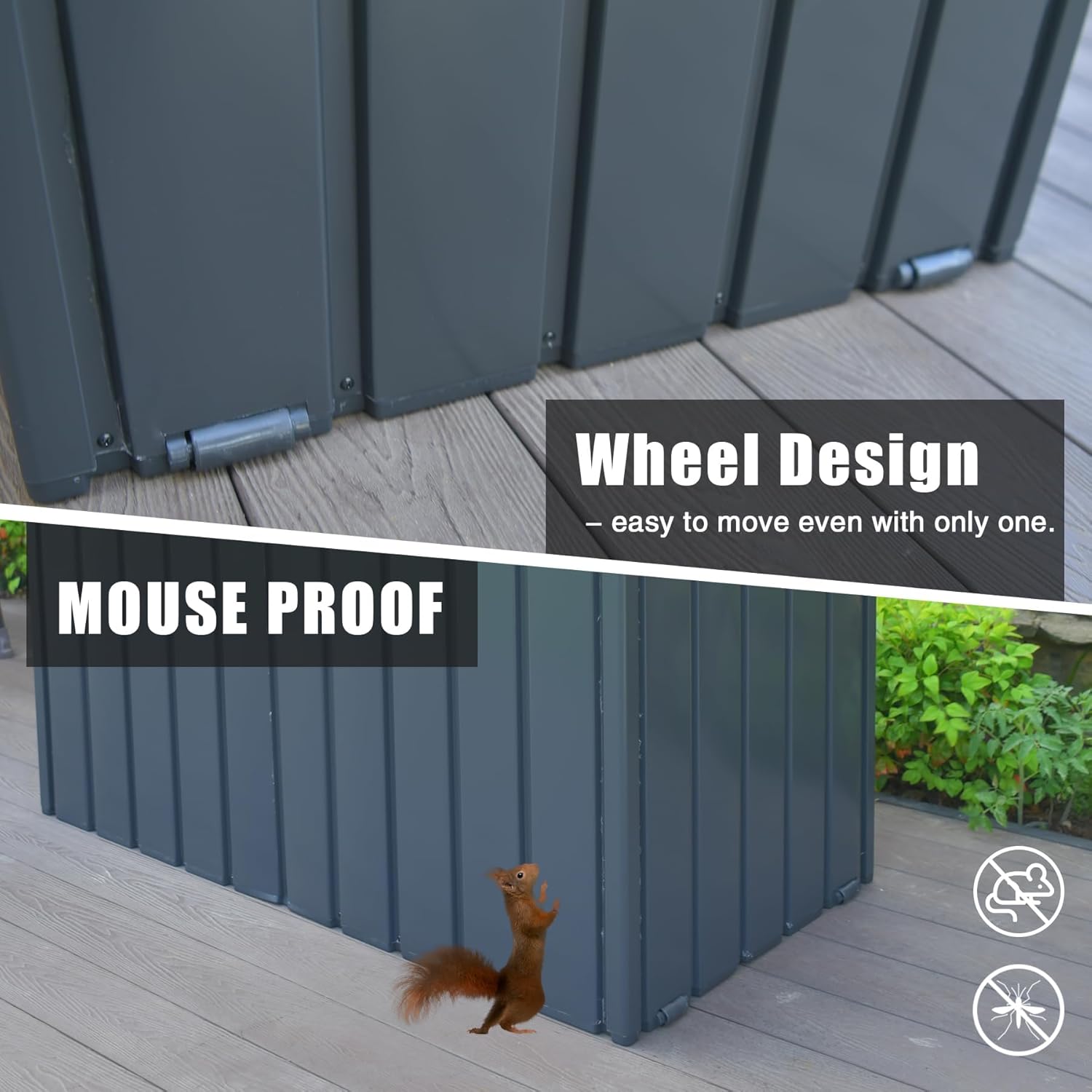 • 🌞【Water Proof & Mouse Proof】: This patio storage box is designed to close hermetically with sturdy construction that can keep out mice and squirrels. The surface is waterproof, no worry about rain or water will erode the storage box.