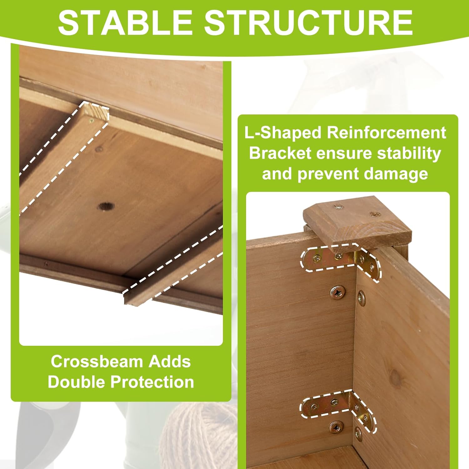 • 【REINFORCED STABILITY】Features four double-layer L-shaped corner brackets, two base support bars, and reinforced leg caps for added structural integrity in raised garden beds with legs