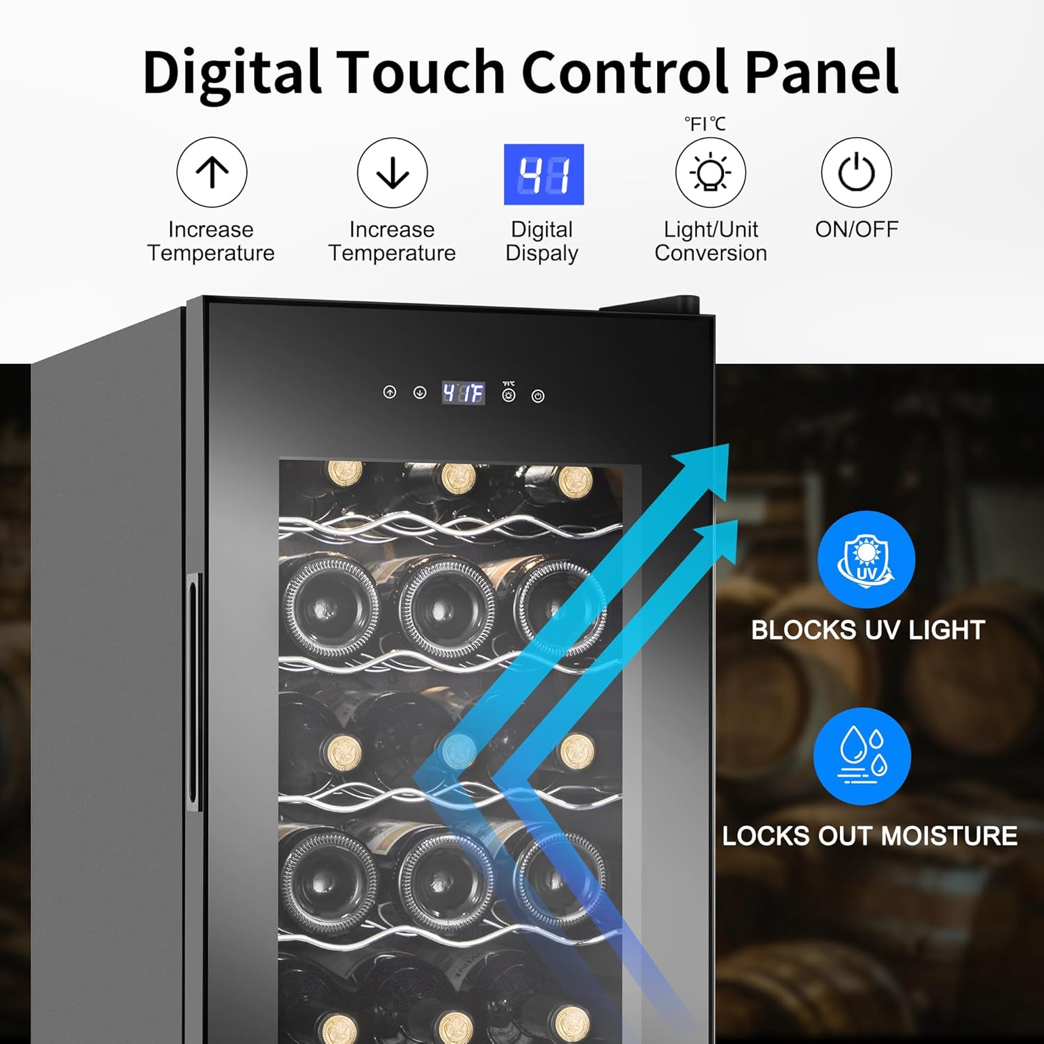 Wine Cooler Refrigerator 18 Bottles, Small Wine Fridge Mini Wine Fridge Countertop with Glass Door Wine Cellars for Red Wine, Champagne, Dry White Wine, Sparkling Wines