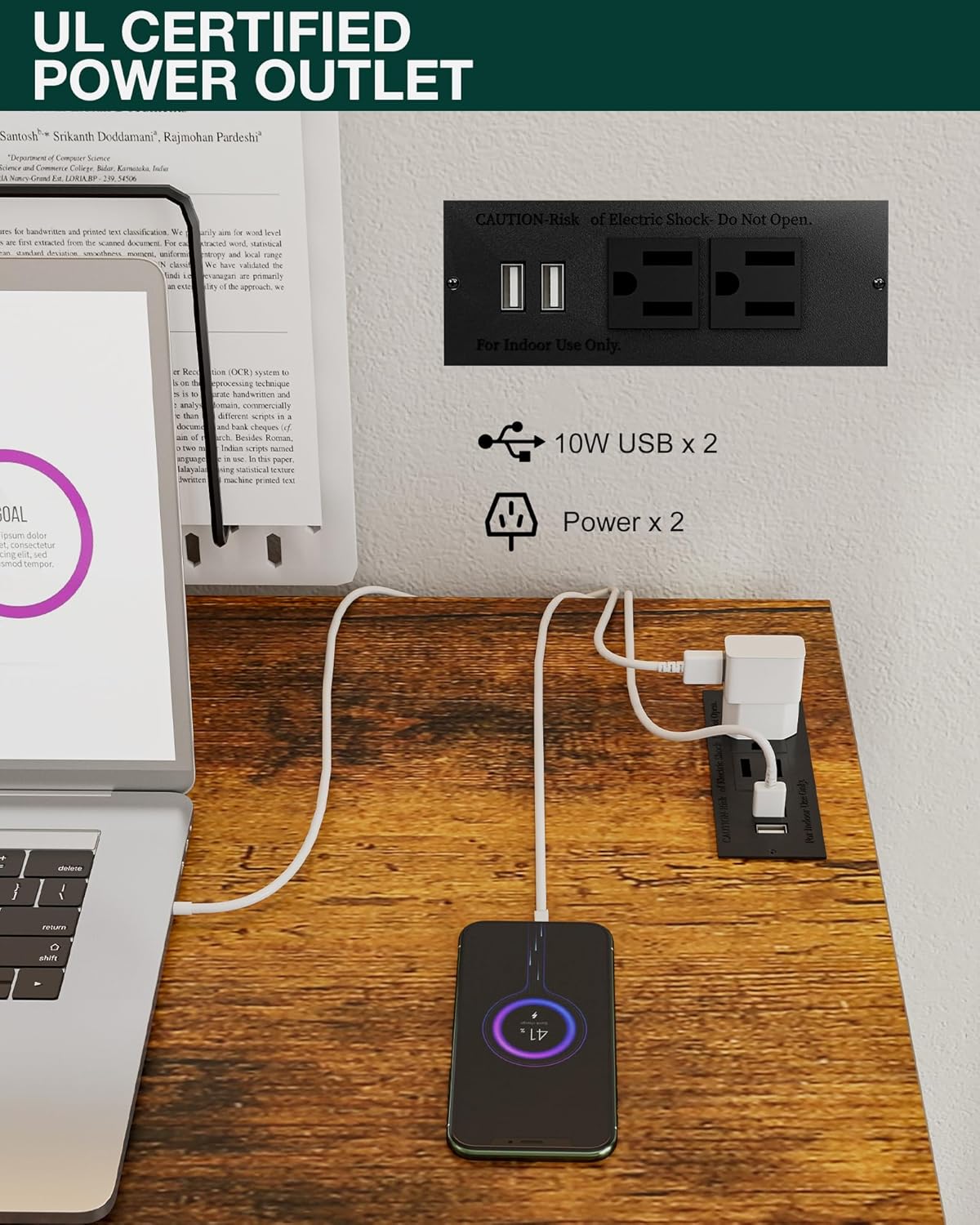 • 👍𝗜𝗡𝗧𝗘𝗚𝗥𝗔𝗧𝗘𝗗 𝗣𝗢𝗪𝗘𝗥 𝗛𝗨𝗕 – 𝗖𝗛𝗔𝗥𝗚𝗘 𝗘𝗩𝗘𝗥𝗬𝗧𝗛𝗜𝗡𝗚 𝗔𝗧 𝗢𝗡𝗖𝗘 — Stay powered and productive with 2 built-in AC outlets and 2 USB ports—perfect for laptops, phones, tablets, and more. No more messy extension cords or reaching for distant plugs; this smart design keeps all your devices charged and your workspace neat