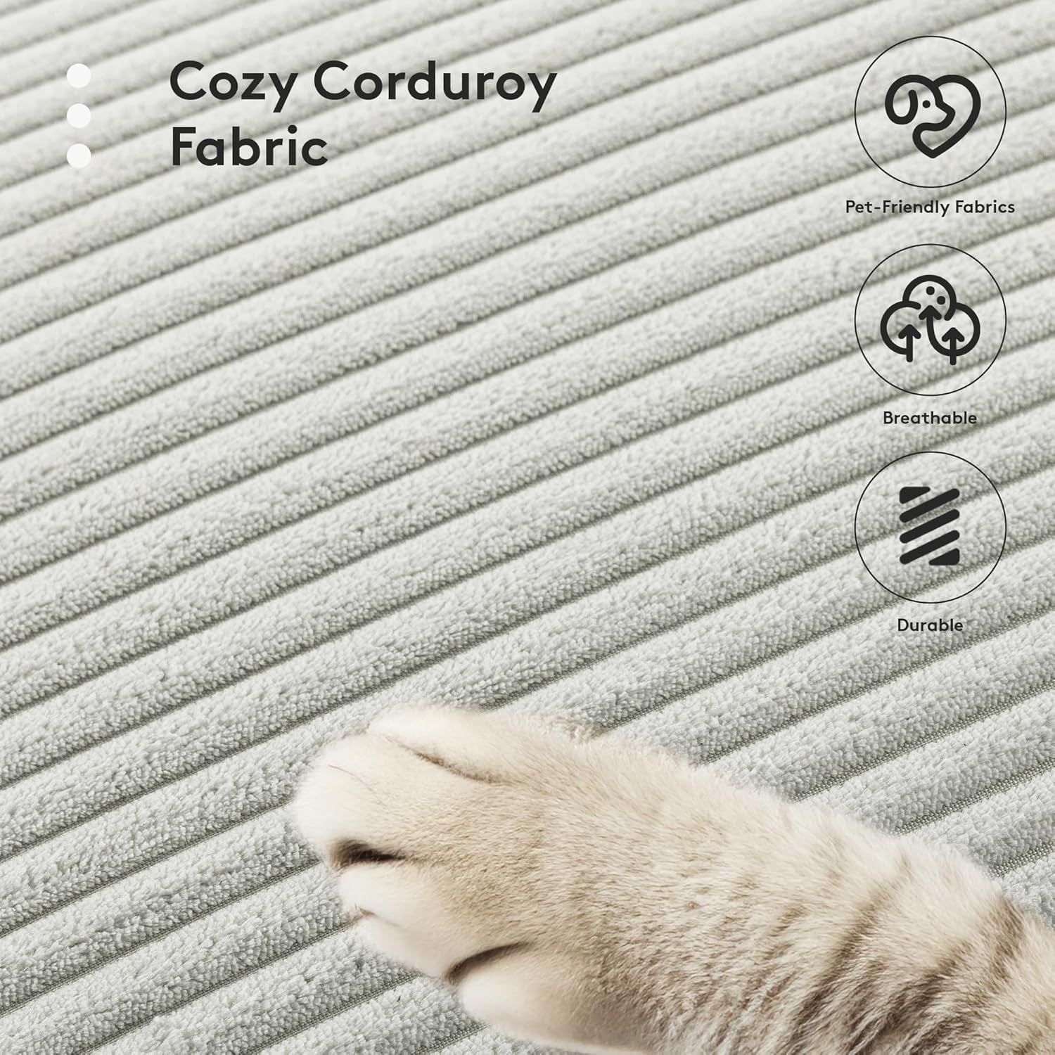 • Luxurious Corduroy Comfort: Sink into ultra-soft, textured corduroy upholstery in a versatile. the cloud sofa are paired with 2 removable throw pillows and an ottoman, it delivers ergonomic support for your back, neck, and legs