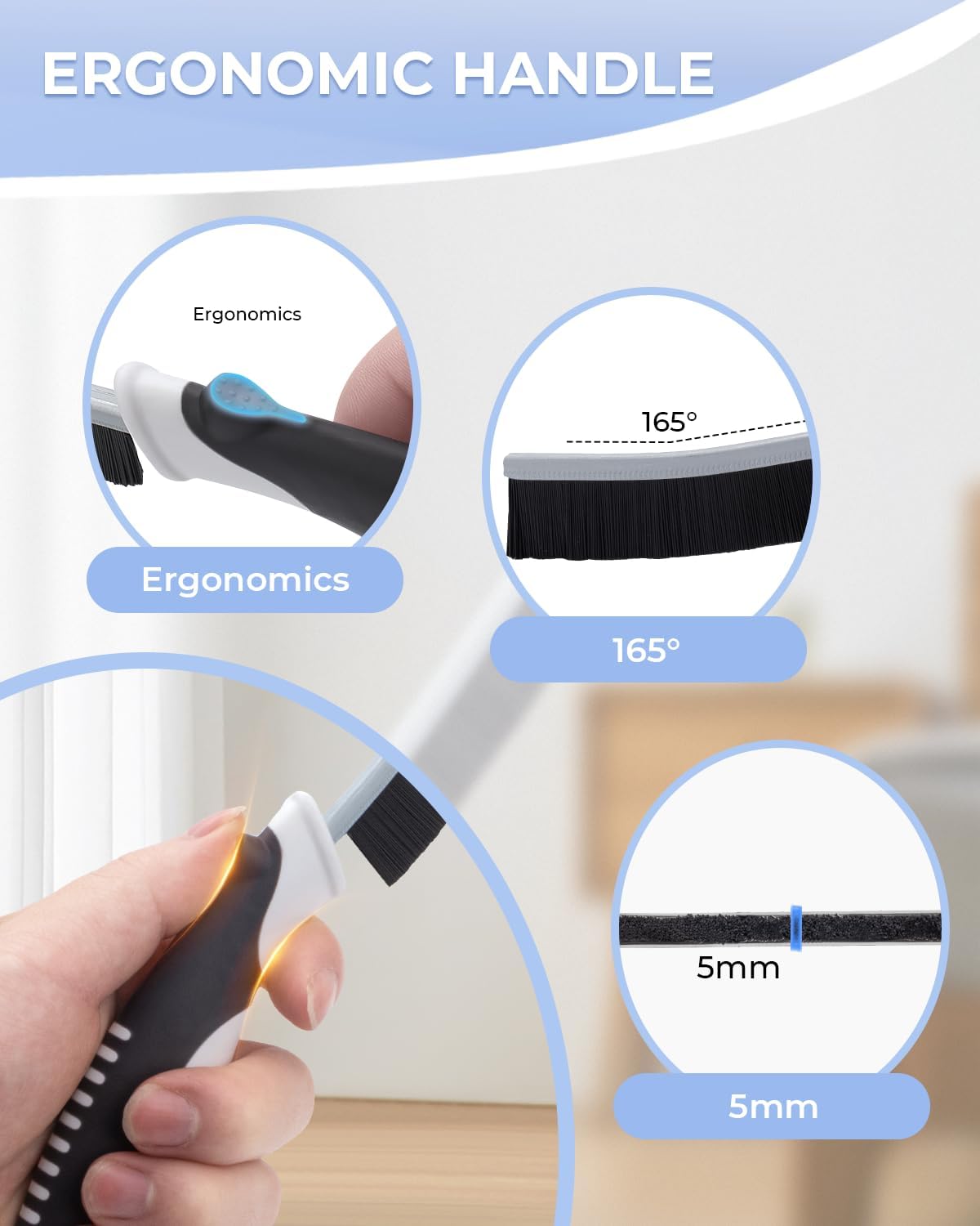 • Multi-purpose Brush:Crevice brush for cleaning a variety of surfaces, including faucet and bathtub grout, shower door grooves, toilet seat gaps, floor tile grout, sliding glass door tracks, door rail grooves, around bathtub, kitchen sink edges, household appliance surfaces and crevices (microwave, coffee maker, oven, washing machine, fan), Window rails, shutters, stoves, keyboards, bathtubs, vents, swimming pools, vehicles, furniture, boats, countertops, shower door frames, toilet tank baseboards, etc.