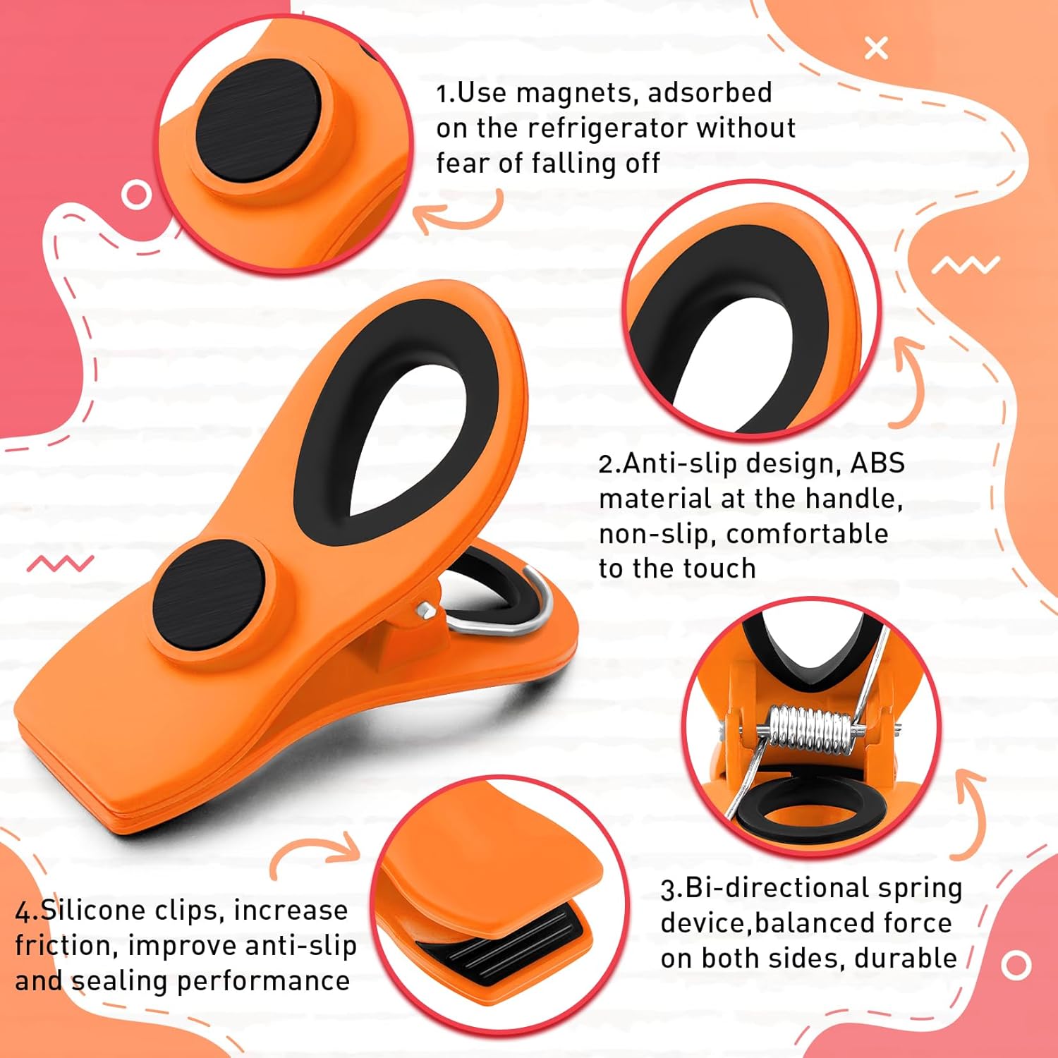 • You will receive: Set includes 24 magnet clips with soft touch handles - the perfect shape and size clip for all different sized bags of chips and food. sufficient quantity for you daily using and replacing demands, also nice to share with your family and friends who need it