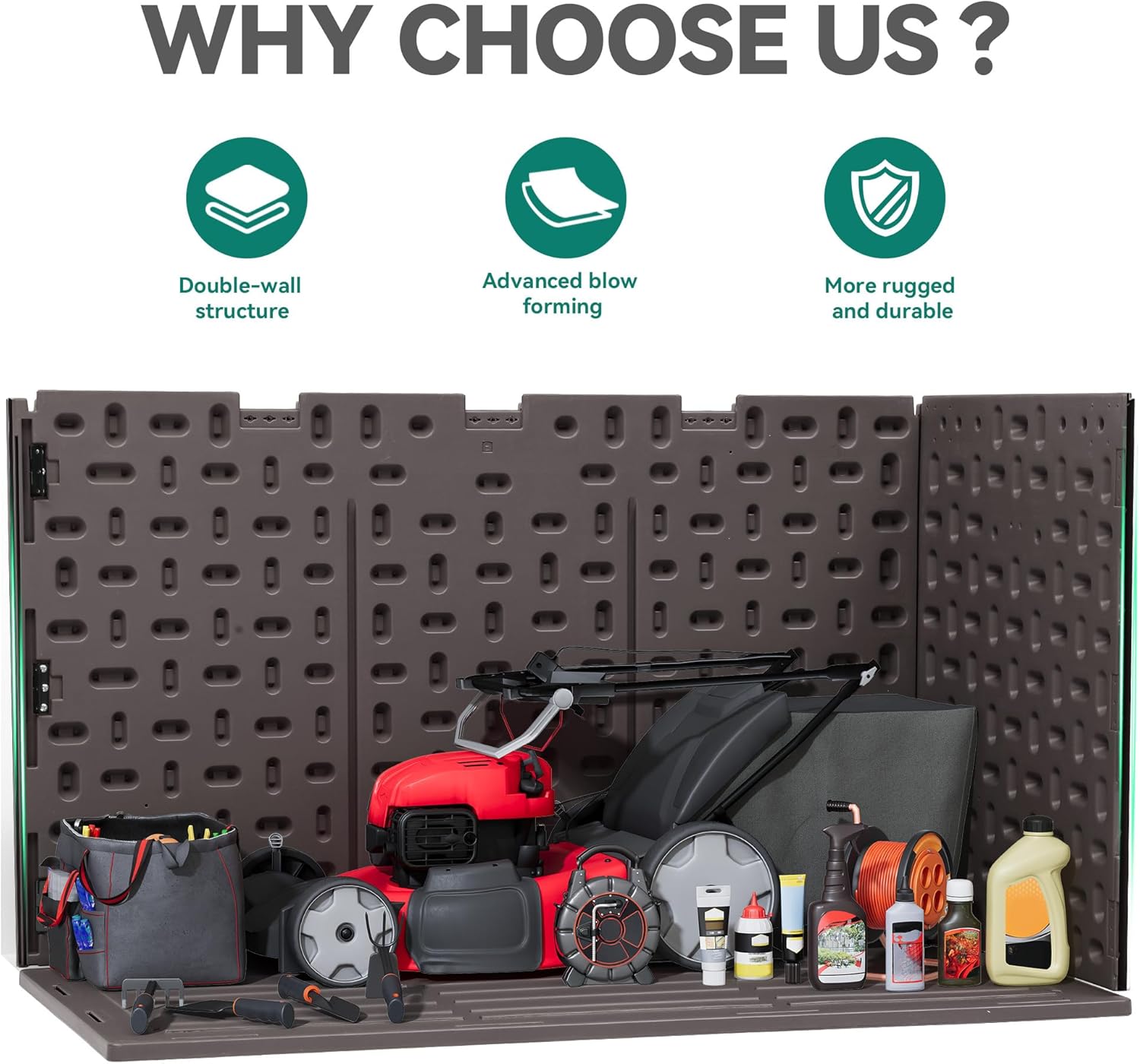 • Double-Layer Structure: Our all-weather resin deck box stands out with a double-layer structure and enhanced with internal reinforced steel beams, providing durability and resilience for outdoor use.Please note that for logistical purposes, the product will be delivered in two packages that may arrive at different times