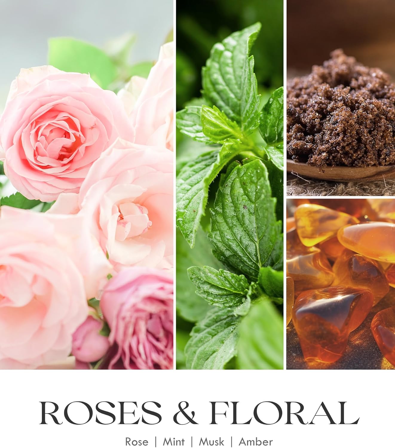 • HIGHLY SCENTED ROSE CANDLE: The aromatherapy candles called Rose is meant to fill your room with aroma, with the top scent of Rose, Pink Pepper, Mint, middle scent of Rose, Raspberry Blossom, Litchi, base scent of apyrus, Amber, Musk, this fresh and dewy scent delivers you full sensory experiences like wandering in the rosy garden on a sunny day.