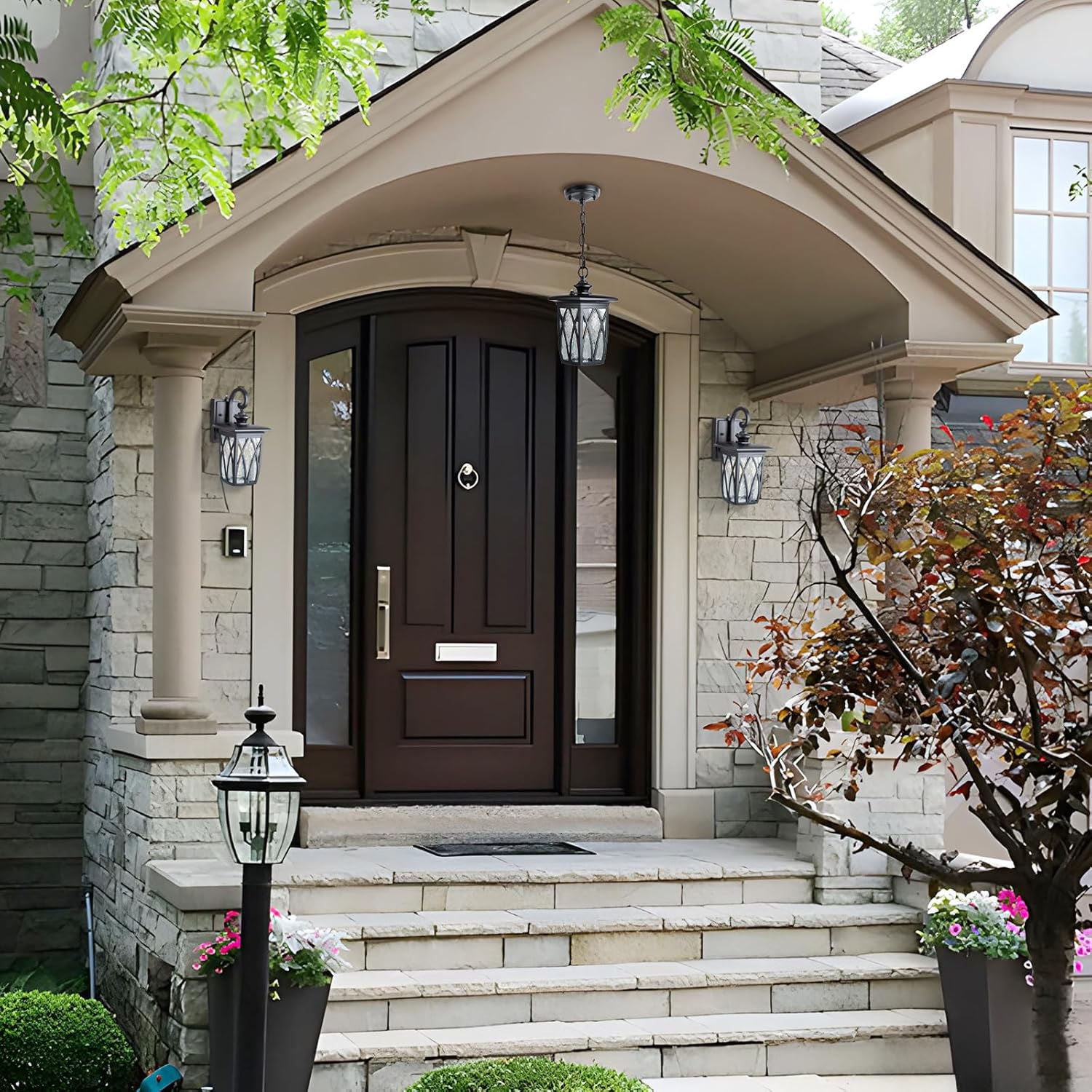 • Traditional Craftsman Style Wall Lantern – Make a statement with these outdoor wall sconce lights featuring elegant water ripple glass. The timeless Craftsman-style design enhances curb appeal and provides warm, inviting illumination to porches, garages, and entryways