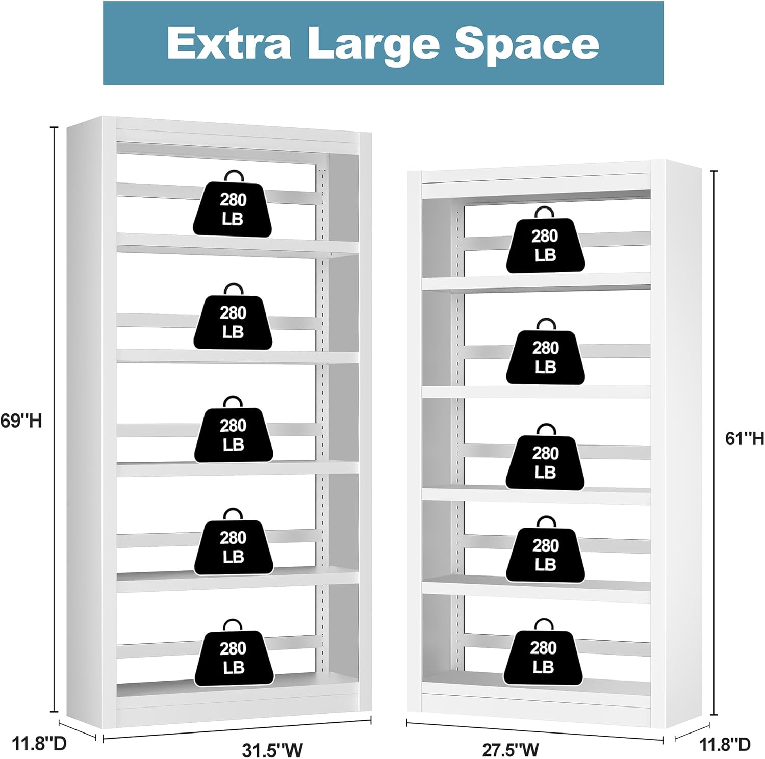 • 【Spacious Storage for Maximum Space】Size:69"H x 31.5"Wx 11.8"D. 5-tier tall bookshelf offers ample storage for books, files, and decor, making it a great choice for home office upgrade and space-saving furniture.