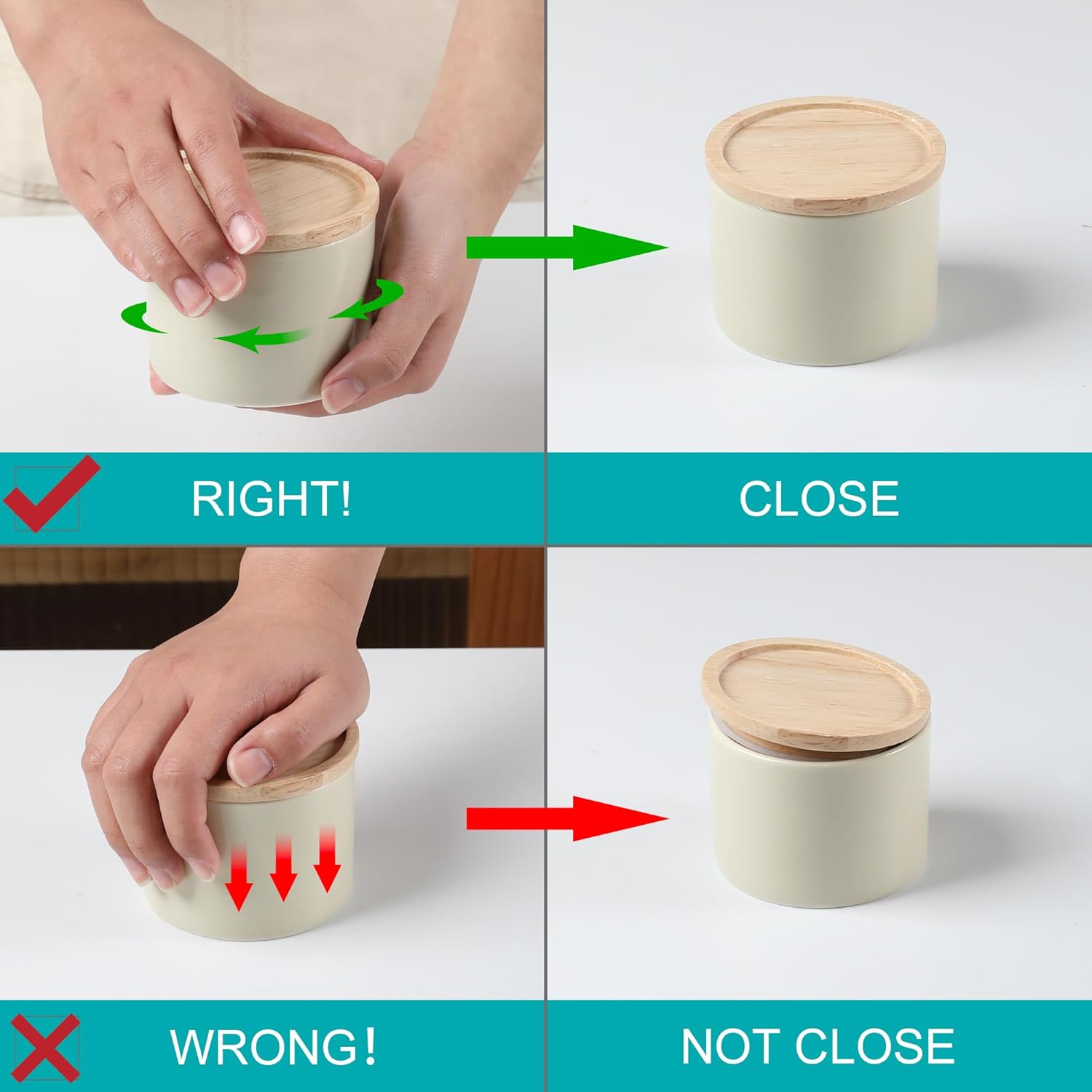• PROFESSIONAL MATERIAL - Sweejar food storage containers are made of food grade, smooth porcelain. The containers with wooden lid and rubber seal to ensure a true airtight seal and lightproof. They are good for maintaining food and seasoning fresh.