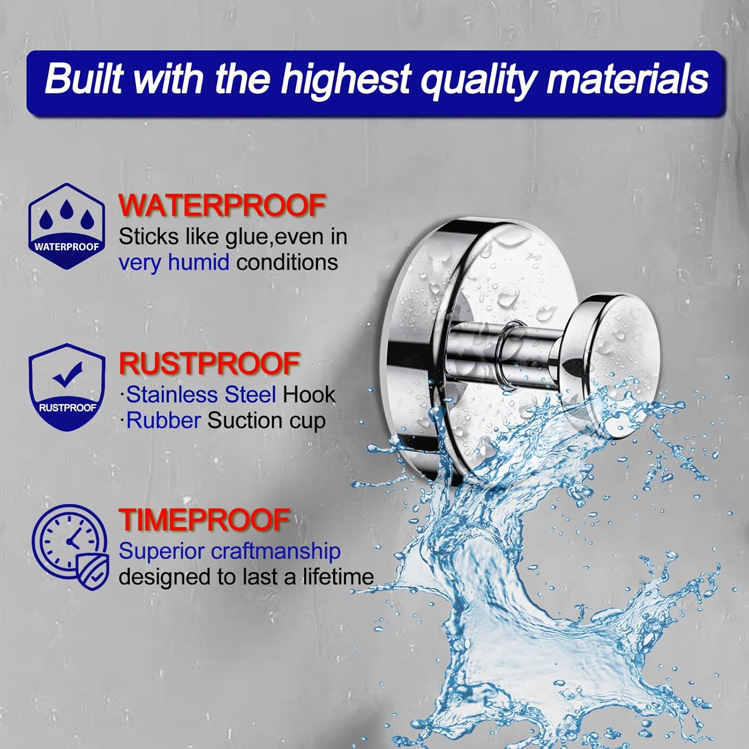 • [​Shower-Safe & Rustproof]: Stainless steel ​shower hooks + super silicone suction base withstand daily steam/water splashes. Removable without residue - ideal for renters' ​towel hook needs.