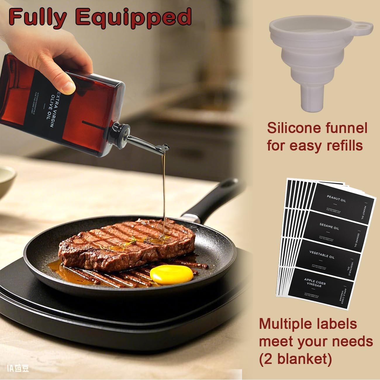 • Drip-Free Spout for Precise Pouring: This kitchen oil dispenser features a drip-free spout for clean, controlled pouring. Use it as an olive oil bottle dispenser, vinegar container, soy sauce dispenser, or syrup bottle—this dispensador de aceite de cocina ensures a mess-free experience. It's perfect as a glass oil dispenser for kitchen, olive oil cruet, or small olive oil dispenser bottle for your cooking.