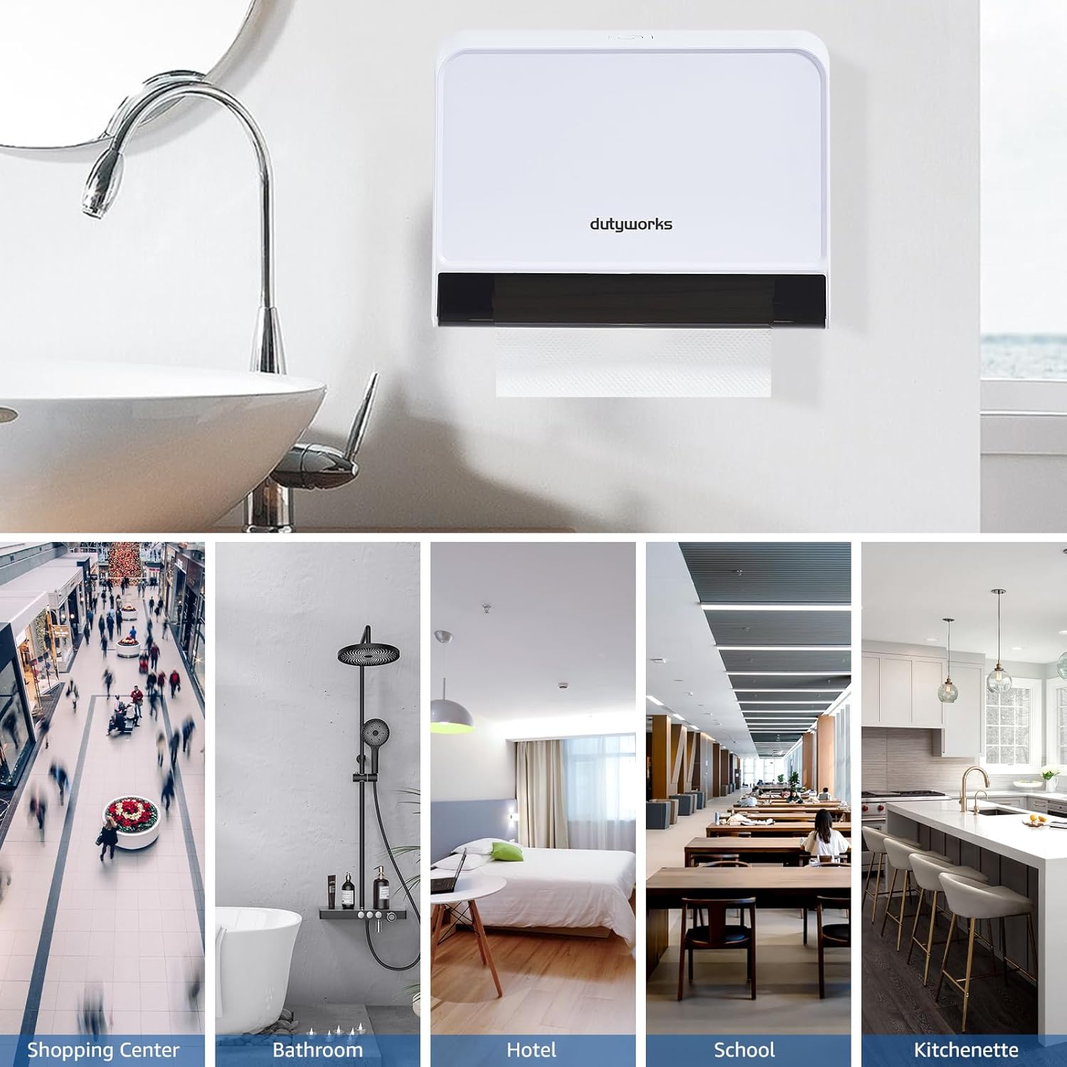 • Single-Sheet Dispensing: DUTYWORKS’ hand towel dispenser features a large outlet design for smooth tissue extraction. Each dispensed sheet is fresh and hygienic, reducing waste and contamination