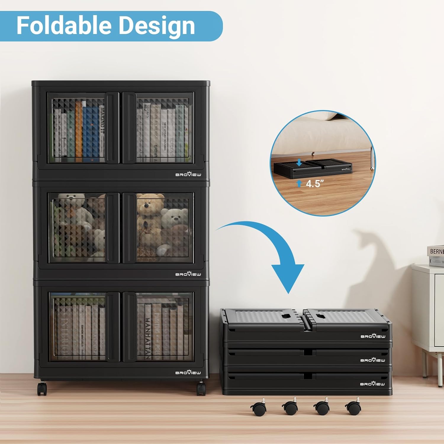 • 【Space-Saving Stackable & Collapsible】Maximize your storage footprint. Stack bins vertically as modular cabinets (bedside, clothing, books, kitchen) and collapse them nearly flat when not in use. Perfect for closets, laundry rooms, garages, playrooms, classrooms, dorms, and car trunks – featuring a roomy, odorless design.