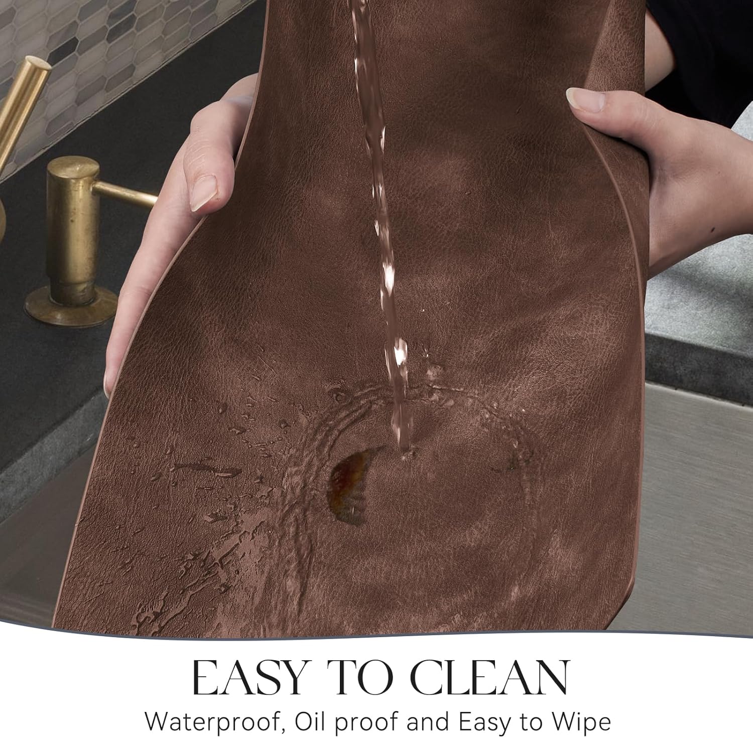• HASSLE-FREE CLEANING: Our faux leather placemats are designed to be 100% waterproof to better protect the table from grease and grime compared to woven and fabric placemats. If the placemats get stained with sauce or food residue, simply wipe with a cloth or rinse with water.