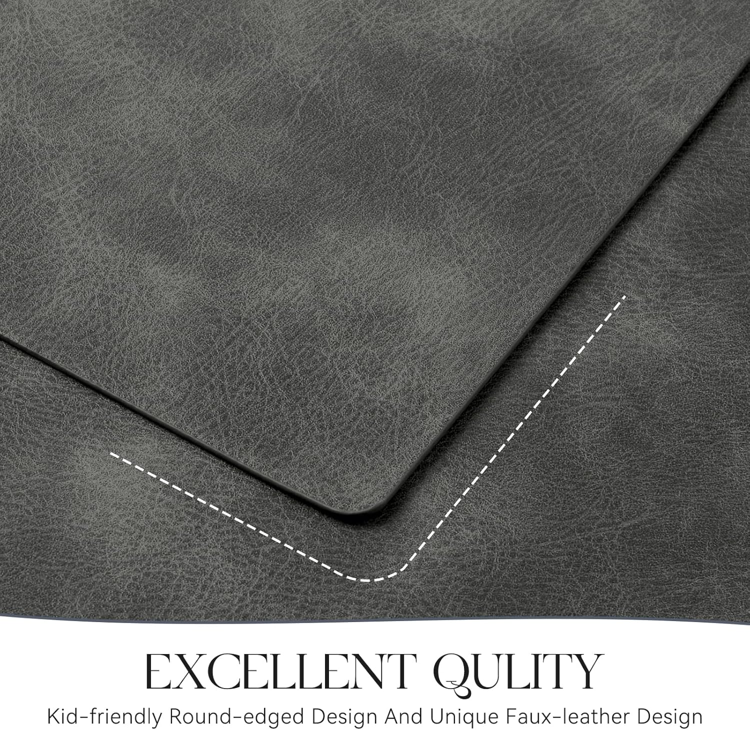 MOSAYT Vinyl Placemats Set of 6-12 X 17 Inch - Faux Leather 100% Waterproof Oil-Proof Wipeable PU Place Mats, Heat Resistant Reversible Table Mats for Kitchen, Dining, Outdoor (Dark Grey)