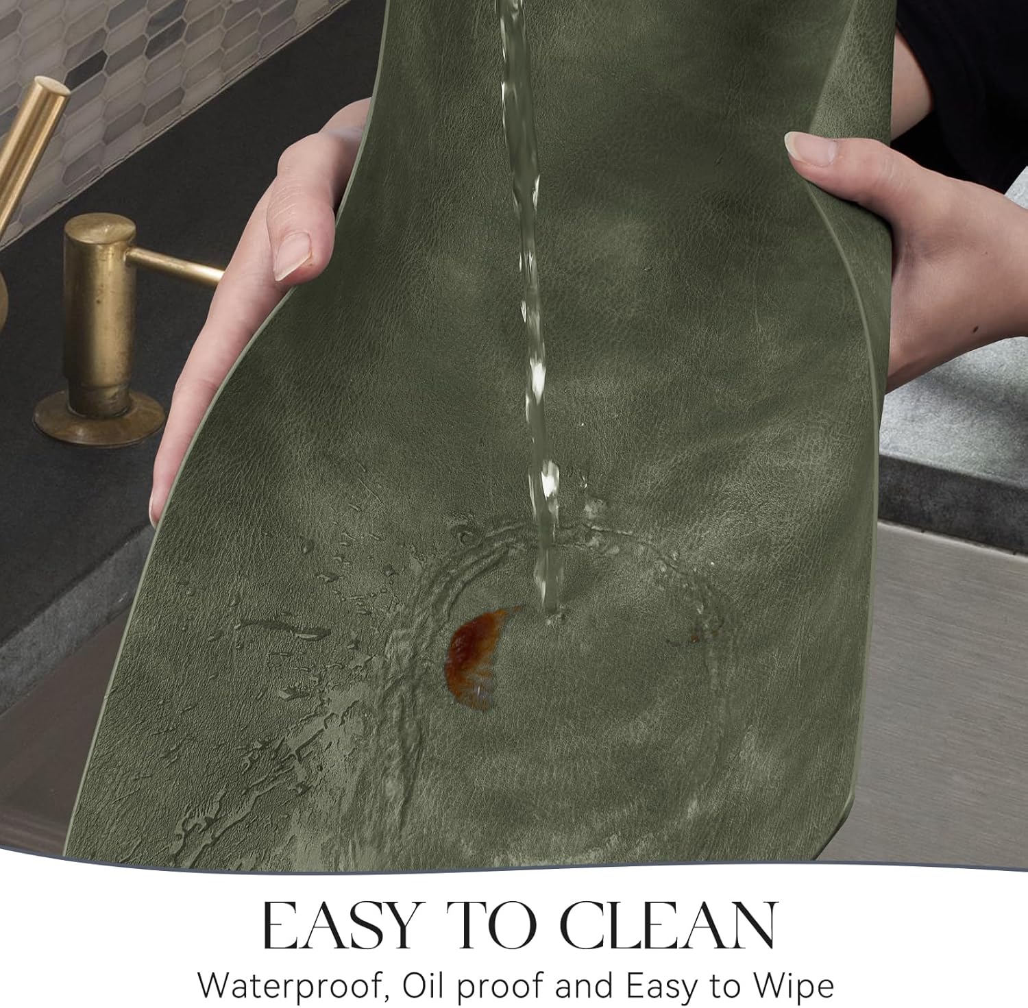 MOSAYT Vinyl Placemats Set of 4-12 X 17 Inch - Faux Leather 100% Waterproof Oil-Proof Wipeable PU Place Mats, Heat Resistant Reversible Table Mats for Kitchen, Dining, Outdoor (Olive Green)