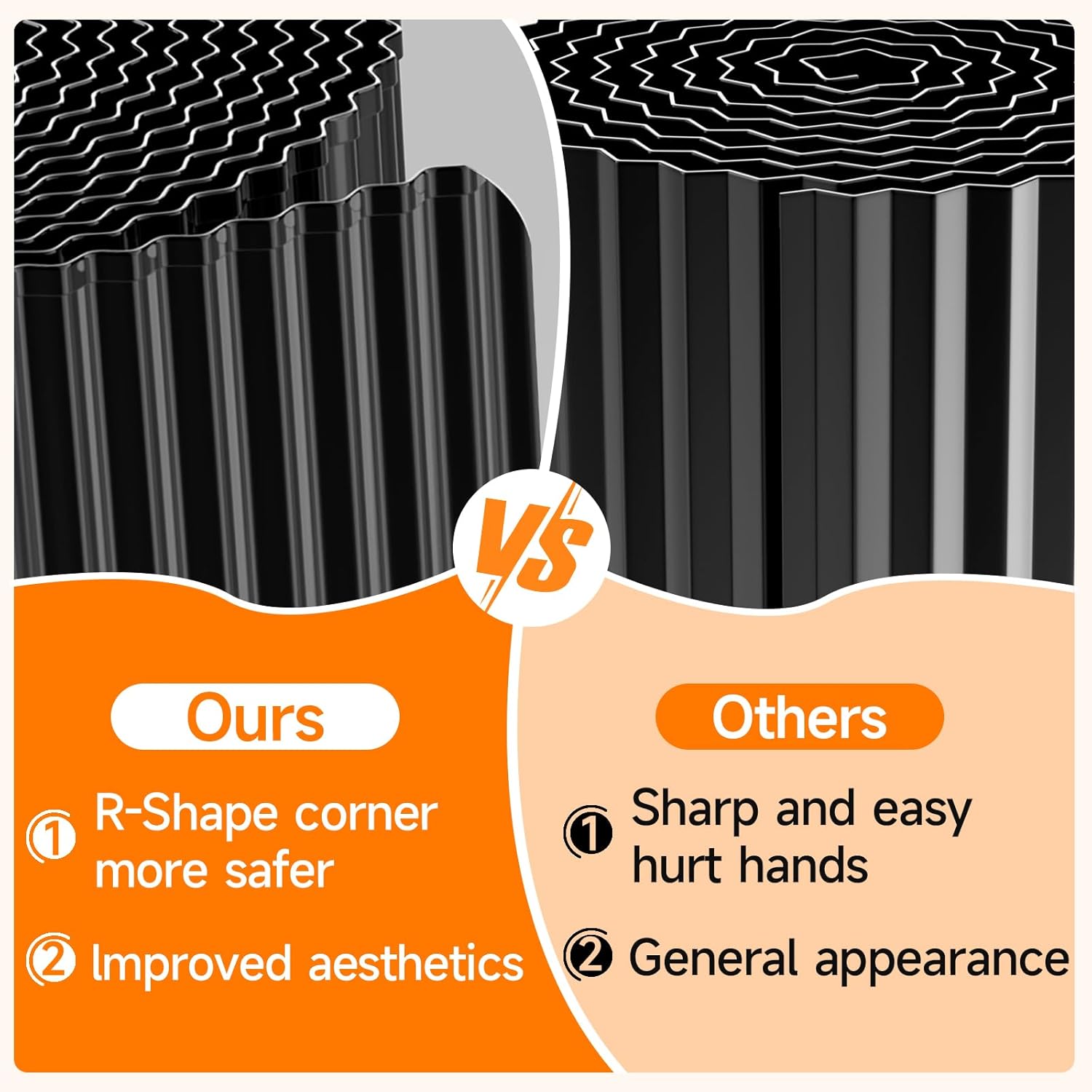 • Clean and Stylish Design Our narrow corrugated metal edge feature rounded R-shaped corners and smooth, rounded, rolled top and bottom edges ,for added security,It not only enhances the aesthetics of your garden, flower bed, or lawn but also ensures a polished and clean look for any outdoor space.