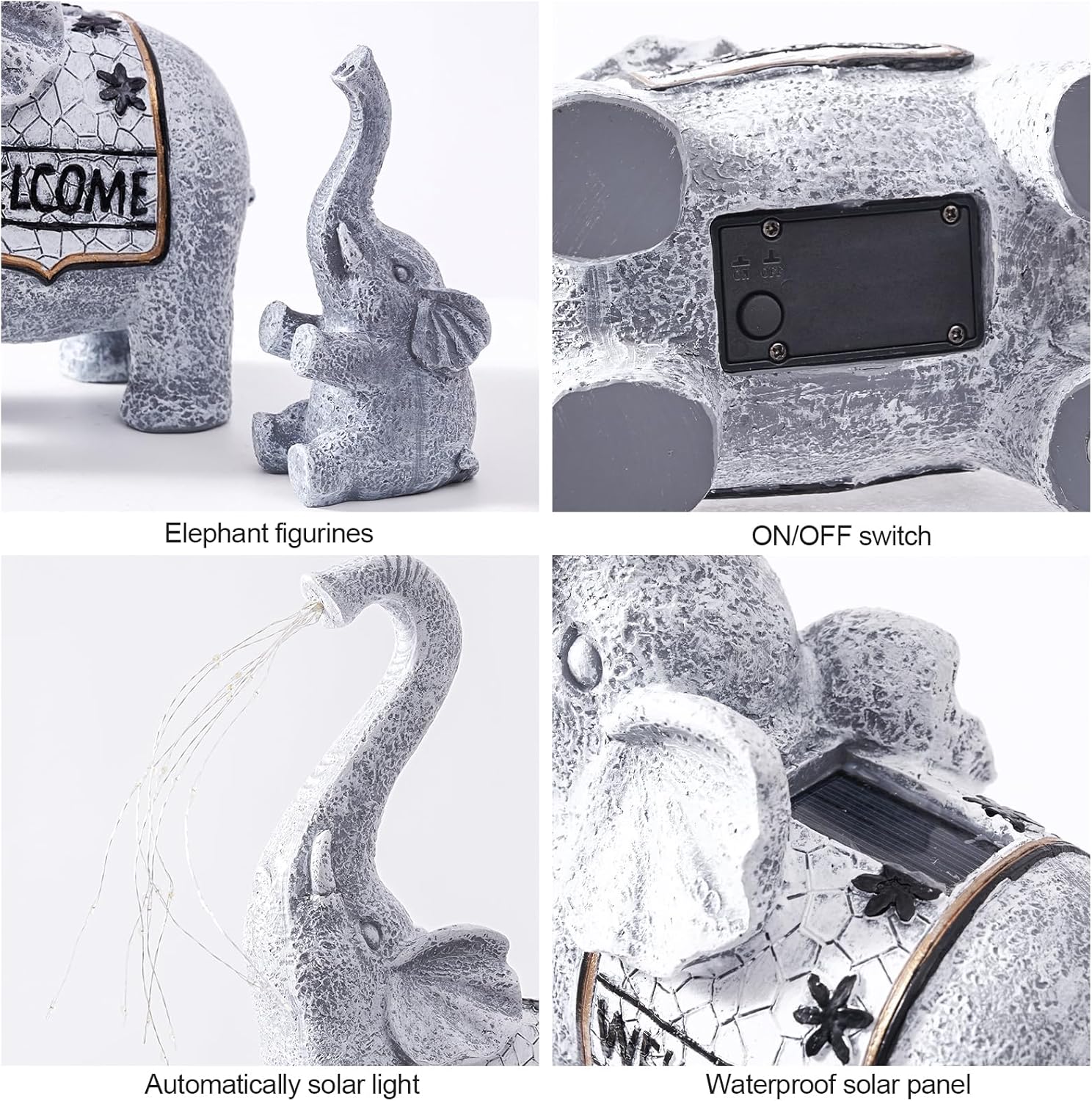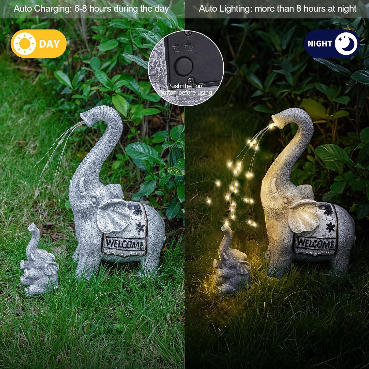 • [Charming Elephant Solar Lights Set] This outdoor figurine set features a large 5.71x7.56in resin elephant with LED string lights simulating a water spray, and a smaller 2.24x4.84in decorative elephant statue. Perfect for garden decor, outdoor decor, yard decorations outdoor, and garden accessories