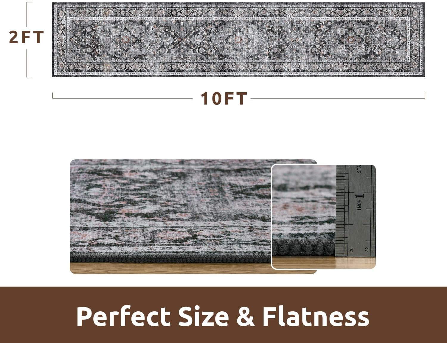AMOAMI-2X10 Runner Rug-Washable Runners for Hallways-Soft Non Slip Bedside Rugs for Bedroom-Vintage Long Rug for Hallways Entryway Laundry Room Stair Kitchen Bathroom Dark Grey & Black