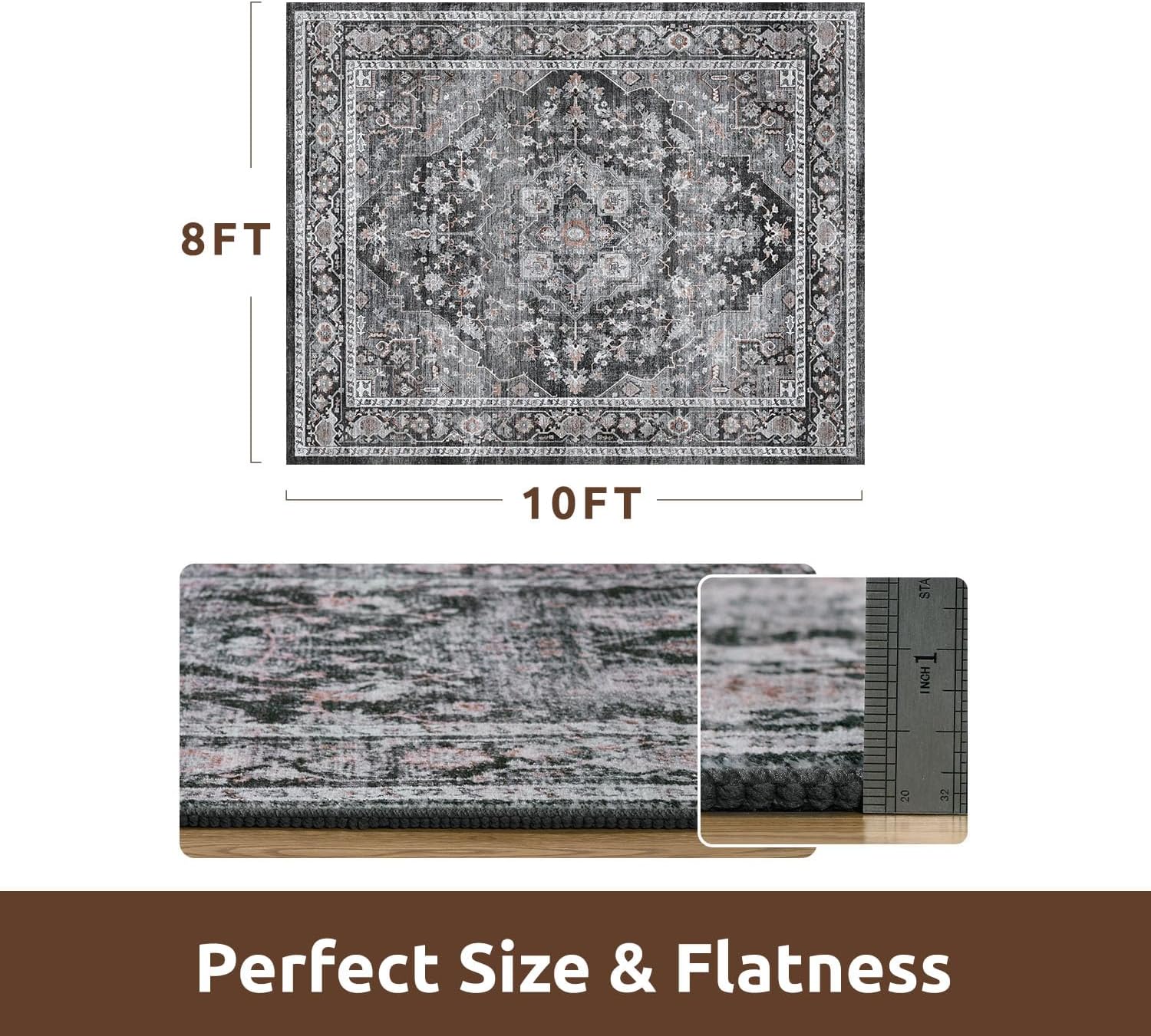 AMOAMI-Area Rug 8X10 Rugs for Living Room-Vintage Soft Black Rugs for Bedroom-Non Slip Carpet-Washable Rug for Dining Room Living Room Bedroom Office Under Table Dark Grey & Black