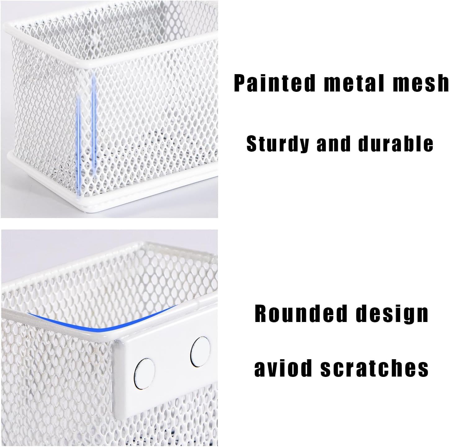• Durable construction: This refrigerator magnetic storage basket is made of high-quality metal material and white finish, sturdy and durable