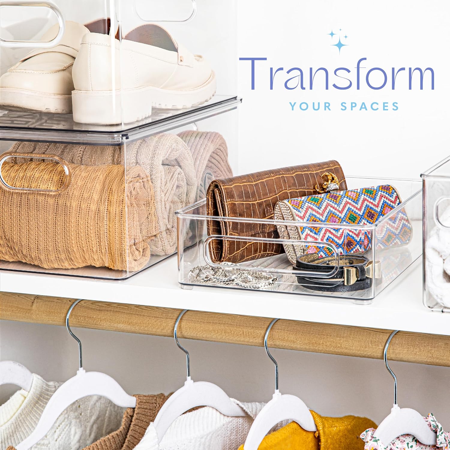 • Easy Visibility and Convenient Handles: The clear plastic design allows you to quickly see and access your stored items without any hassle. Built in grip handles provide a secure and comfortable hold, making it easy to pull out the bin and grab what you need. The open top design adds conveniece, perfect for busy families, organizers and anyone looking to organize their space.