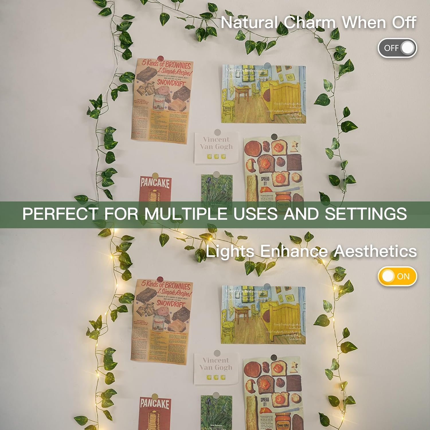 • 40 LED Warm Lights: Every vine string light is interwoven with 40 LED lights, akin to sparkling stars, infusing your surroundings with warm radiance. Much like planets adorning the night sky, these vine lights shine brilliantly in the dark, infusing the decoration with boundless hues of fantasy, as though you were right there. For instance, during the evening hours, the fairy lights with vines can create an atmosphere of tranquility and romance, providing the perfect setting for relaxation.