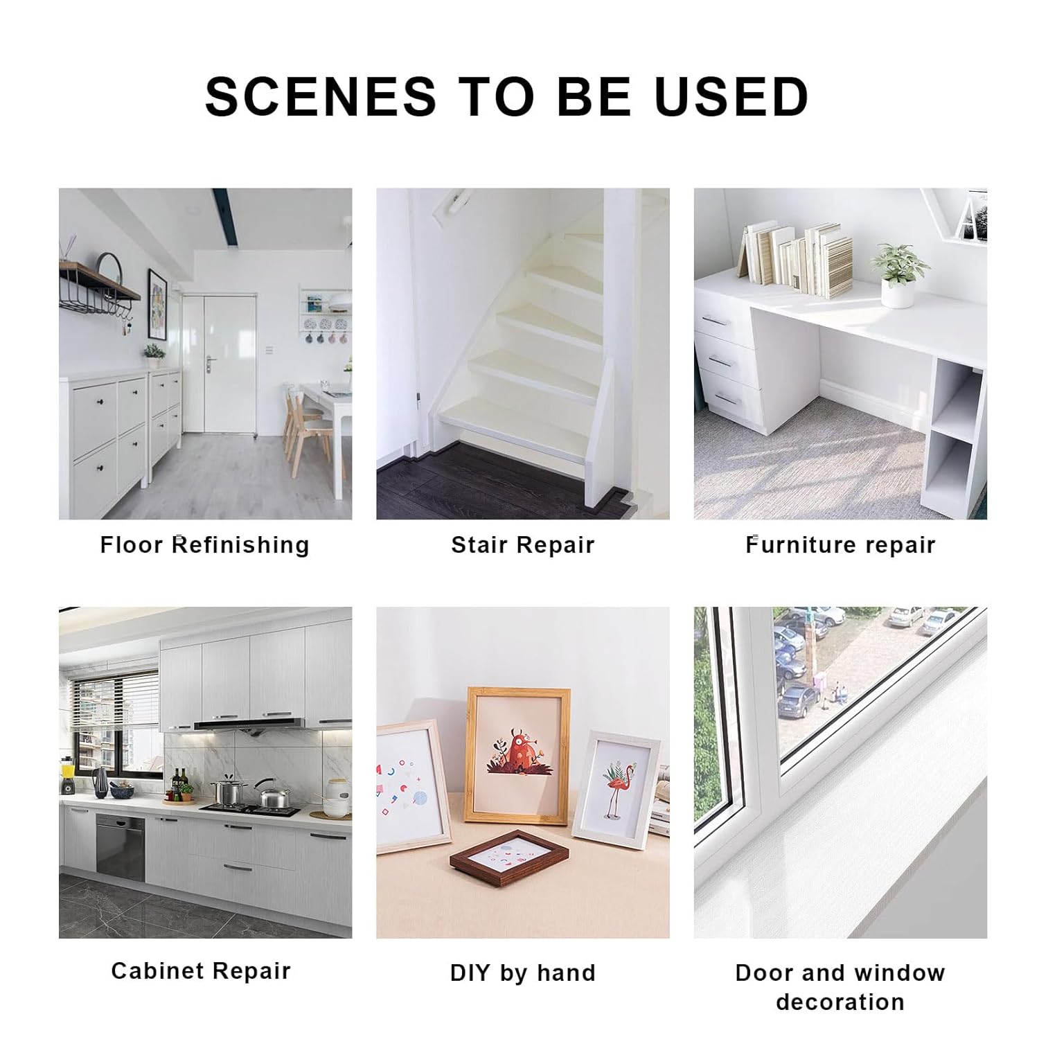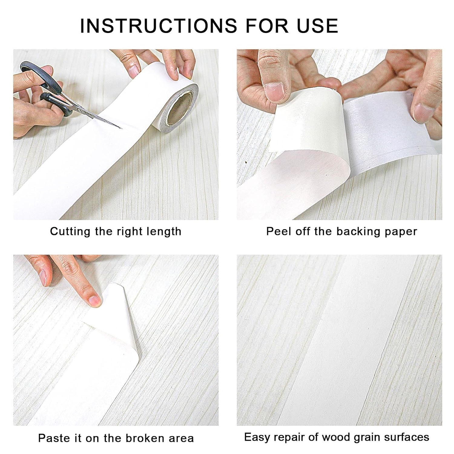 BOMEI PACK Wood Grain Repair Tape,Self Adhesive Repair Patch for Furniture, Floors, Cabinets, Windows, Doors, RV, Home Decor and DIY Projects (1, White)