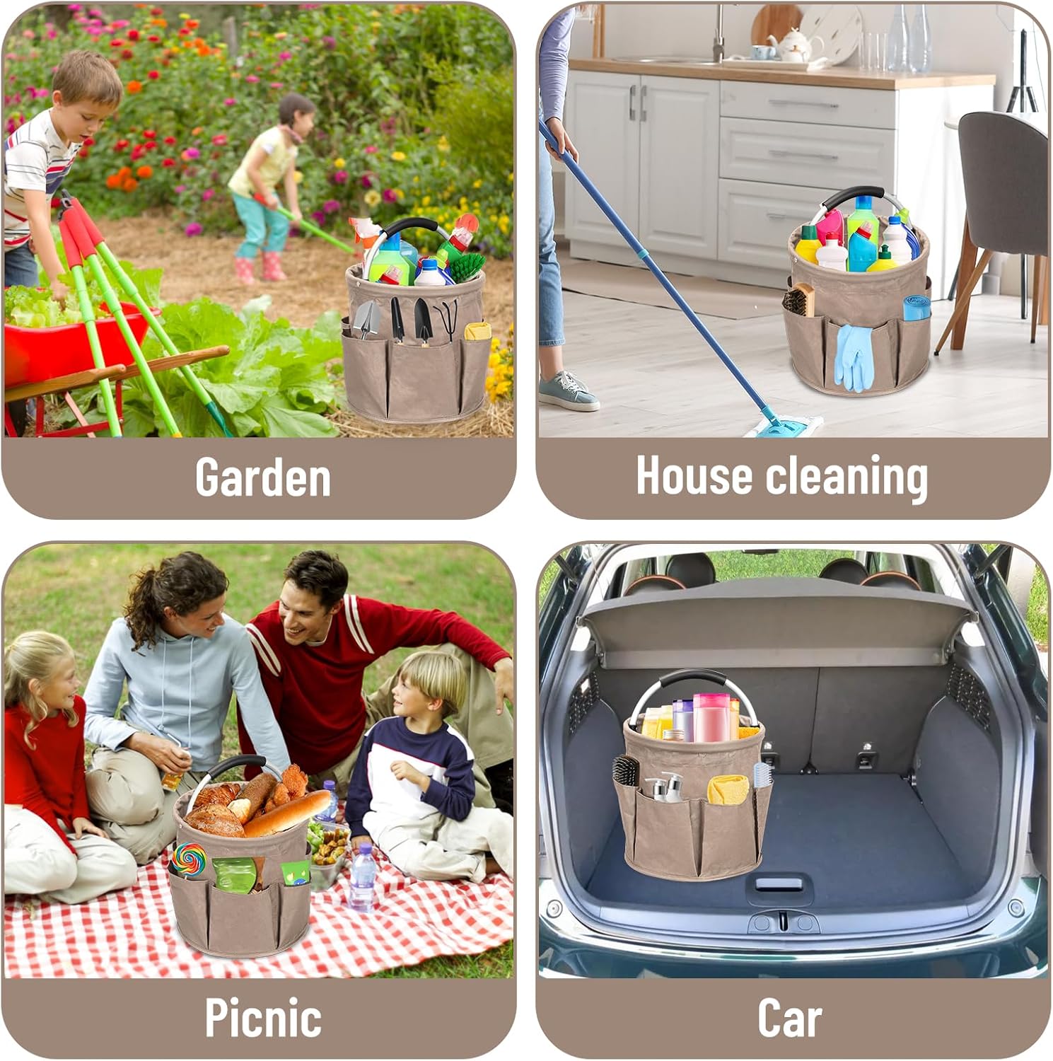 Qivine 17L Cleaning Caddy with Handle, Cleaning Supply Caddy Foldable Cleaning Caddy Cleaning Products Organizers Portable Cleaning Bucket Organiser for Storing Towels (Khaki)