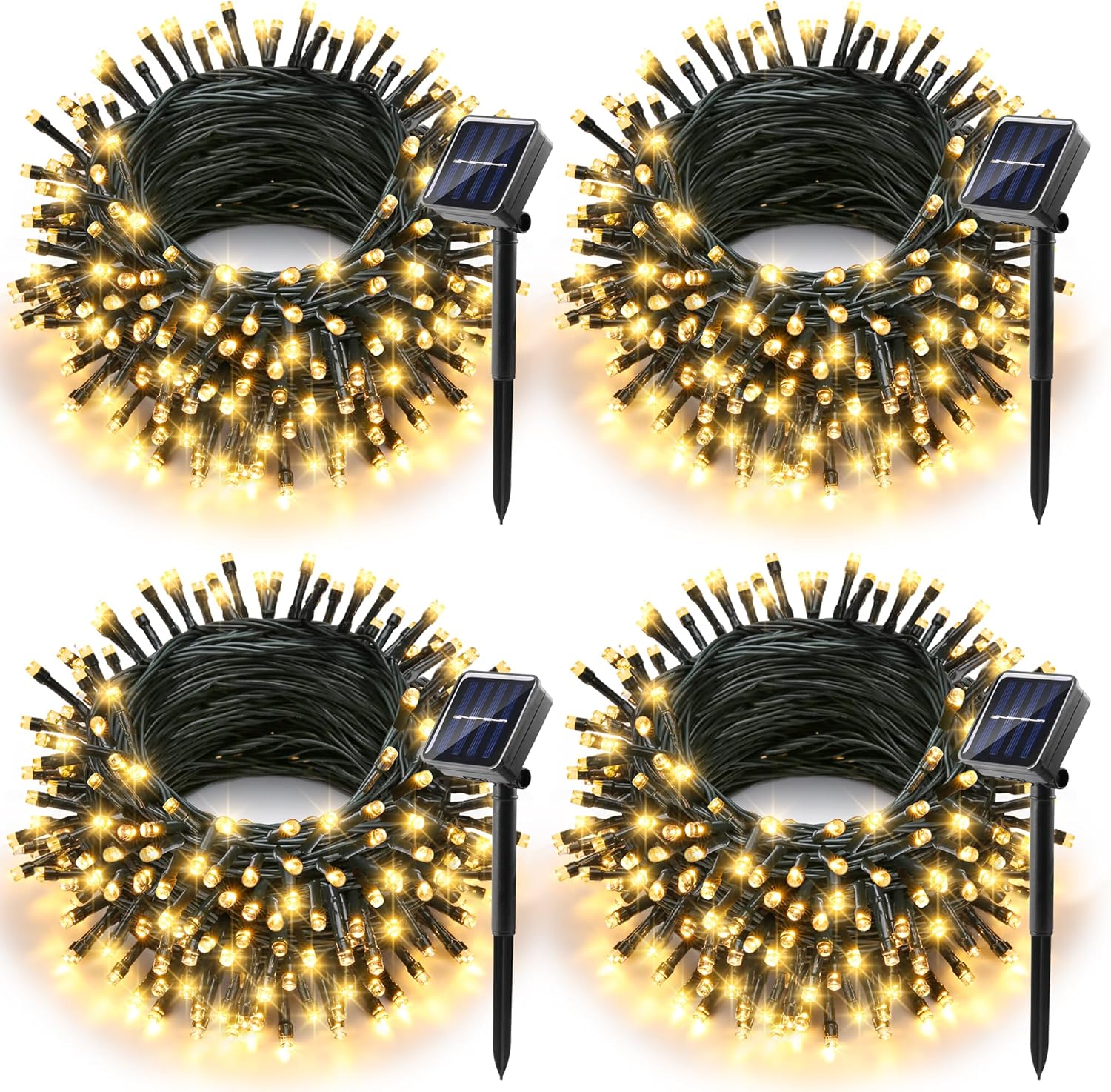 Joomer Solar Christmas Lights Outdoor, 4 Pack Total 156FT 400LED 8 Lighting Modes Solar String Lights Waterproof Fairy Tree Lights for Garden Yard Patio Christmas Decoration (Warm White)