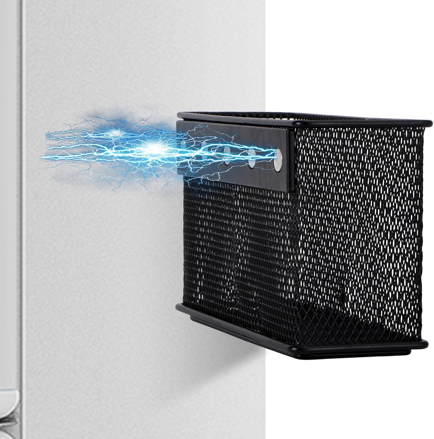 Wire Mesh Storage Baskets Organizer Set of 2 Black Magnetic Basket with 5 Strong Magnets Magnetic Organizer Holder for Refrigerator Locker Whiteboard Office, 6.29'' × 2.28'' × 3.54''