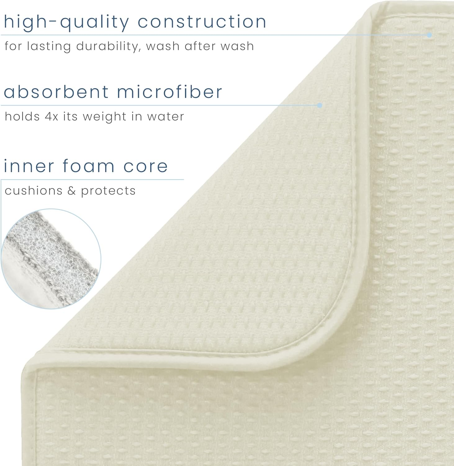 S&T INC. Dish Drying Mat XL, 18” x 24”, Absorbent Microfiber Kitchen Counter Mat, Drying Pad for Dishes, Utensils, Pots and Pans, Extra Large, Diamond Texture, Cream