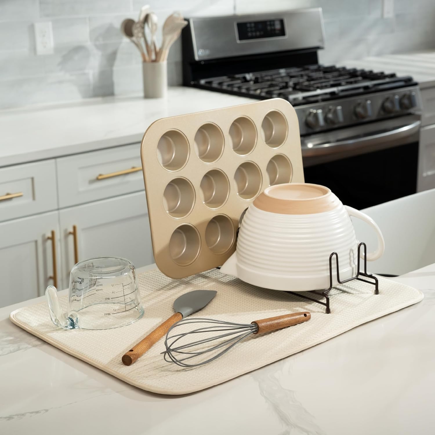 • Dish drying mat for kitchen counter protects surfaces from scratches and scuffs when placed under kitchen gadgets; multipurpose drying pads can be used as an appliance slider for a mixer or blender