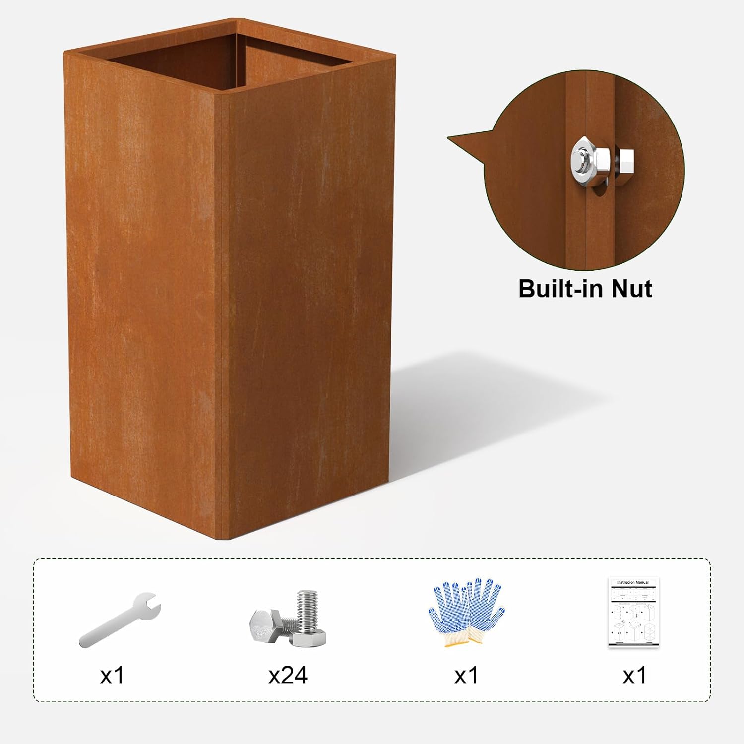 • 🧰 Effortless Tall Square Planter Assembly: Full kit (24 screws/wrench/gloves/manual) + 45° angle splicing. Wrapped edges prevent cuts during setup—DIY-friendly heavy-duty build for elevated designs!