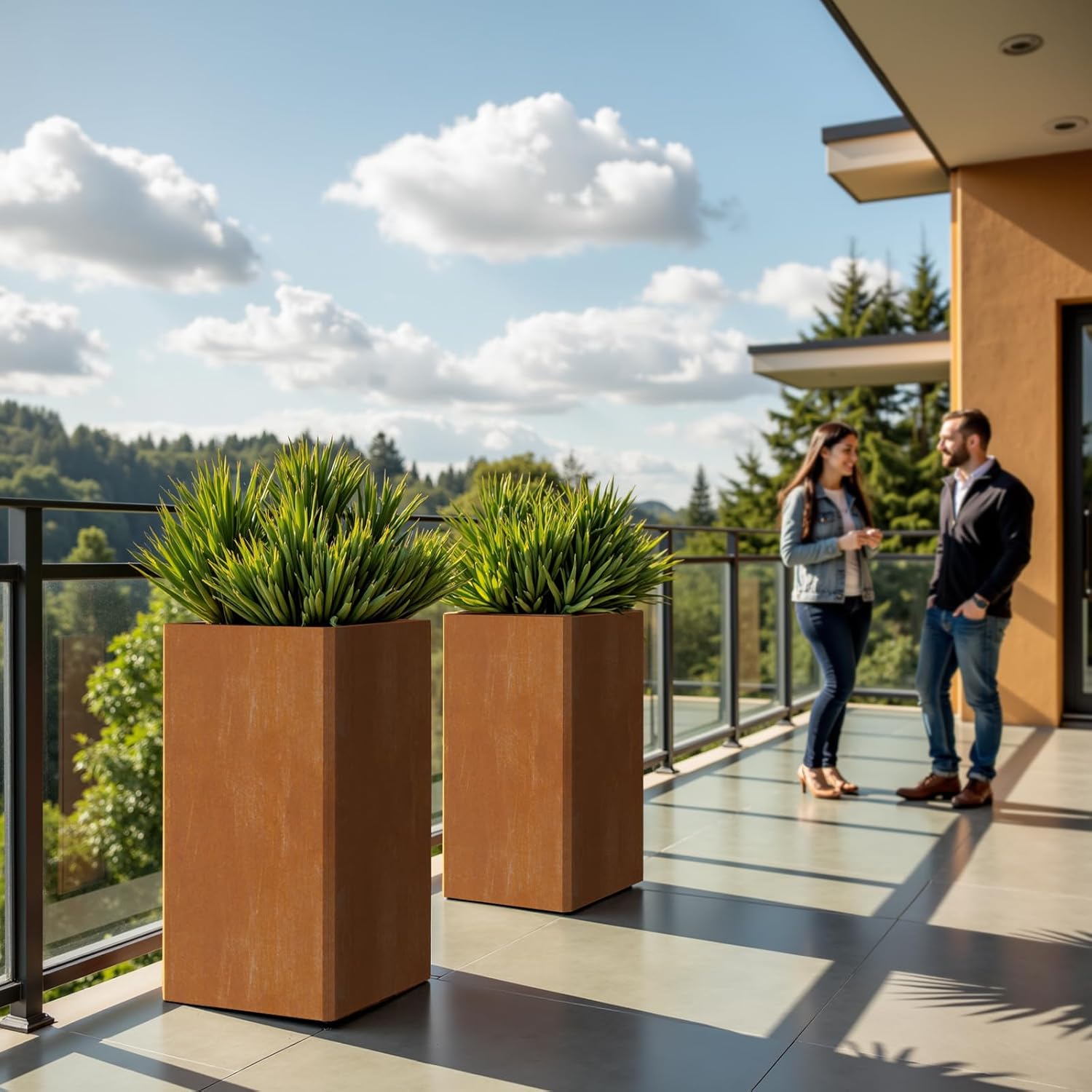 • ♻️ Eco-Height Landscape Transformation: Large outdoor planter made with metal steel withstands elements. Sustainable rust evolves elegantly—transforms porches/offices into instant vertical gardens!