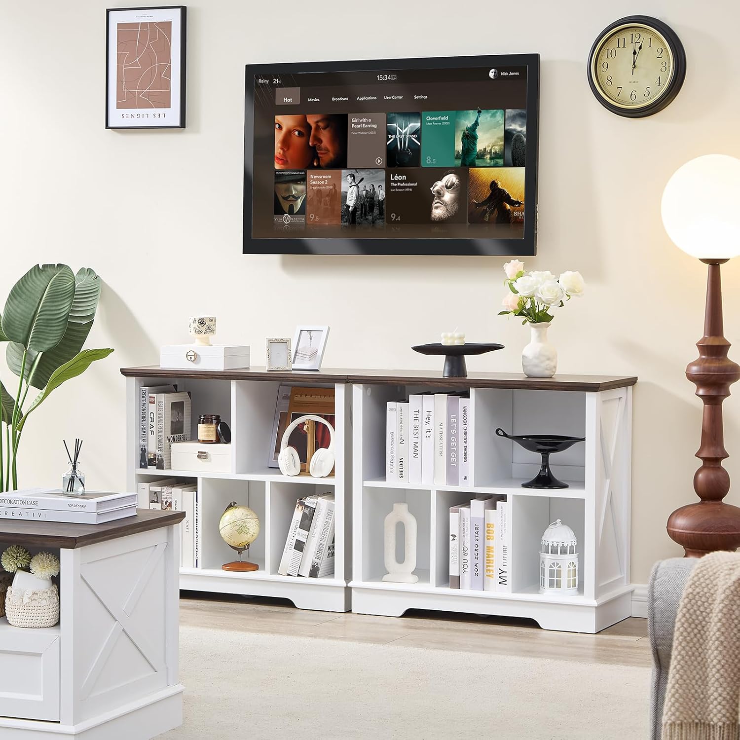 • 5 Cube Storage Space: Our farmhouse-style cube storage bookcase features six spacious compartments, perfect for organizing books, decor, baskets, and more. The rustic X-pattern side panels add a charming touch, seamlessly blending with our existing furniture collection to create a cohesive home decor set. Ideal for living rooms, bedrooms, offices, or closets, this bookcase combines functionality with timeless design