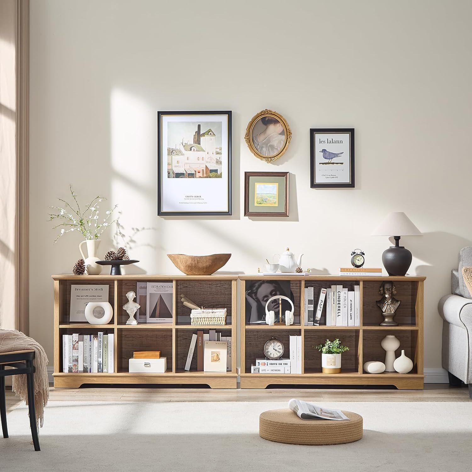 Farmhouse 6 Cube Bookshelf, Storage Organizer Bookcase, Kids Toy Storage Cabinet, Long Bookshelves Storage Organizer Shelf, Wood Display Cabinet Book Shelves for Bedroom,Living Room,Natural Oak