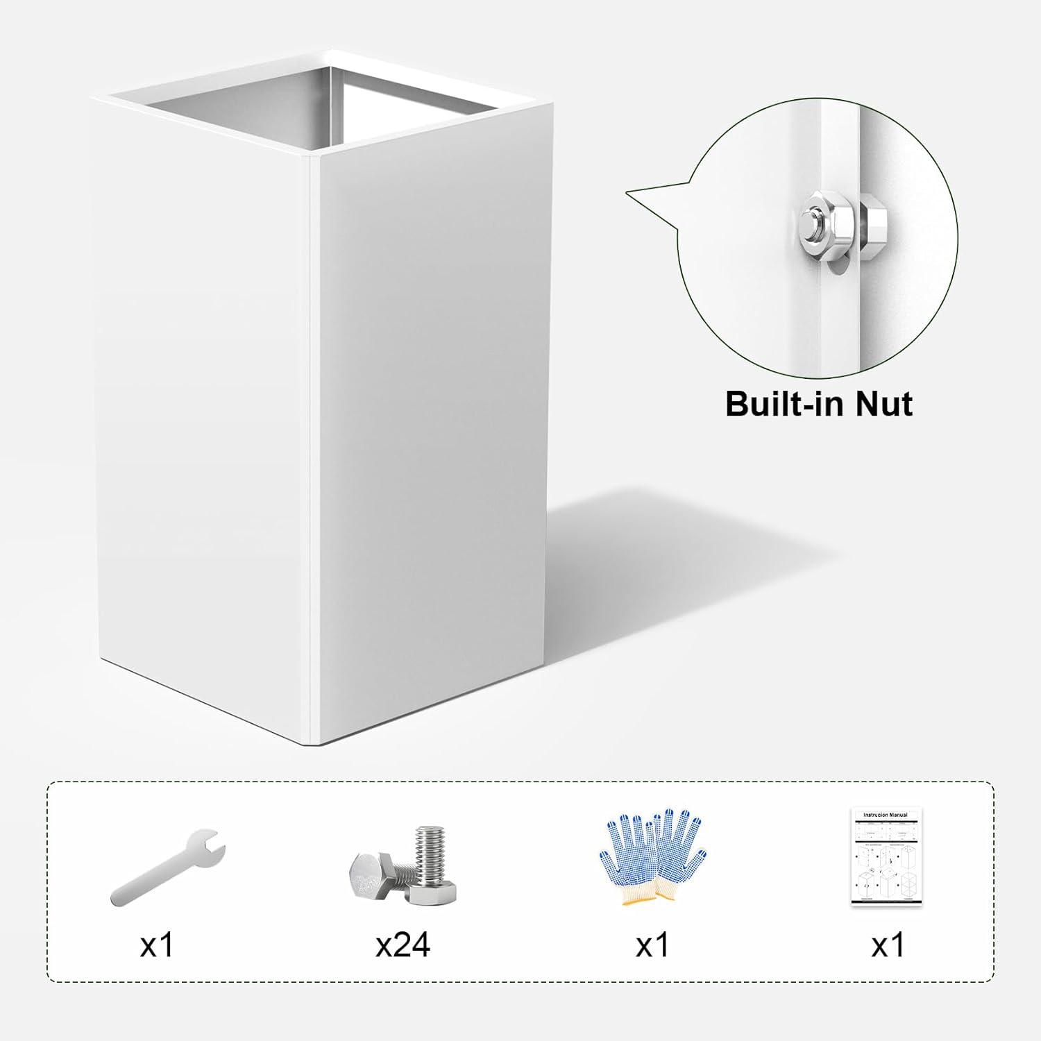 • White & Tall Metal Planter - 14" L x 14" W x 26" H, The tall planter box is equipped with 24 screws, a wrench, protective gloves and instructions. Note: This large metal outdoor flower pots needs to be assembled