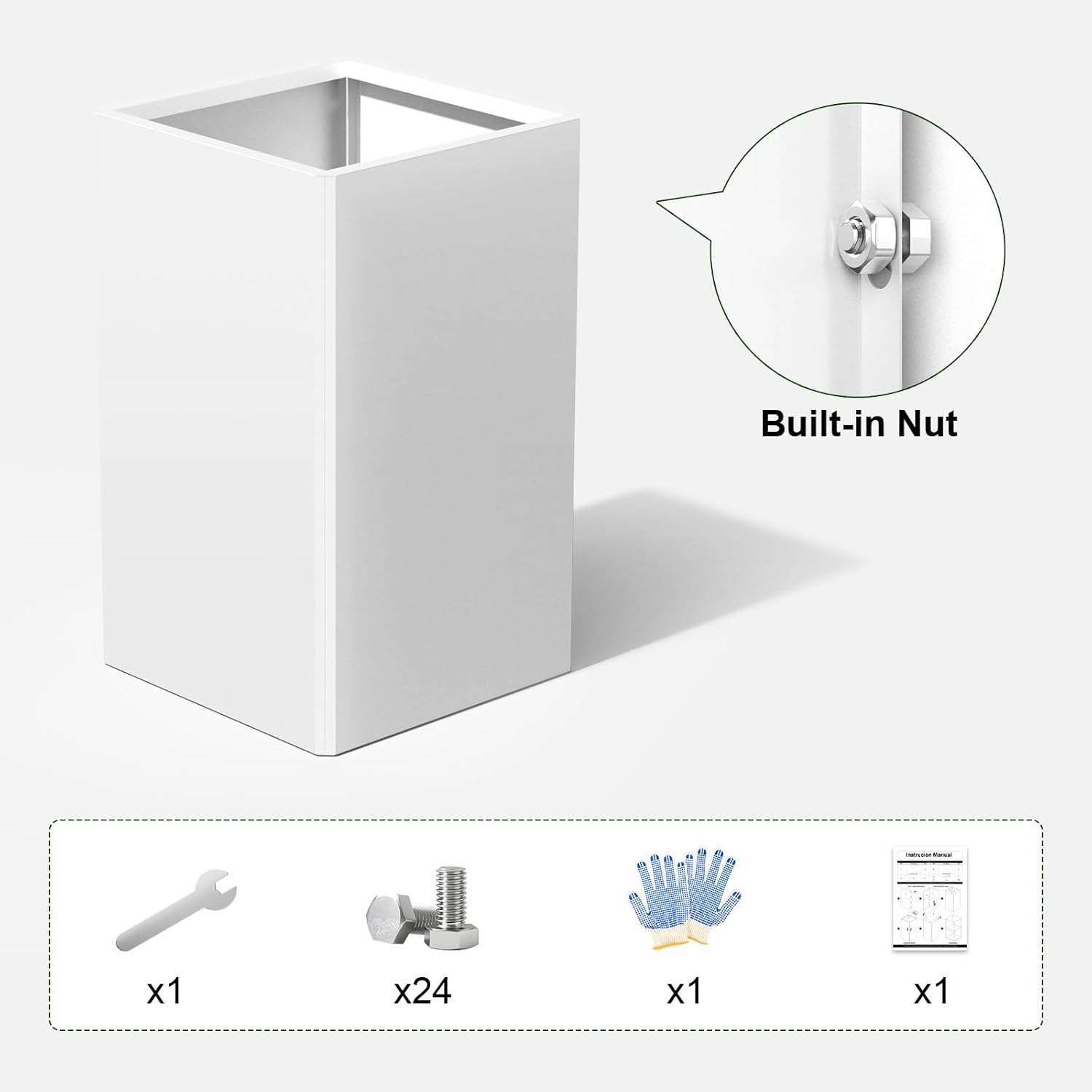 • White & Tall Metal Planter - 14" L x 14" W x 24" H, The tall planter box is equipped with 24 screws, a wrench, protective gloves and instructions. Note: This large metal outdoor flower pots needs to be assembled