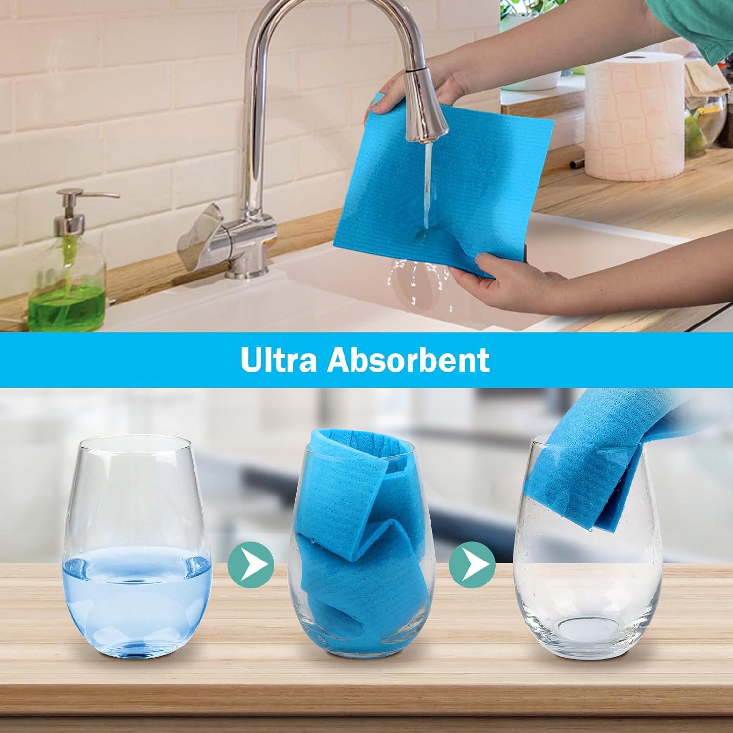 • Super Absorbency: Crafted from wood pulp fibers, these dishcloths soak up spills and moisture in seconds. No more soggy mess, just quick, efficient cleanup for kitchens, bathrooms, and beyond