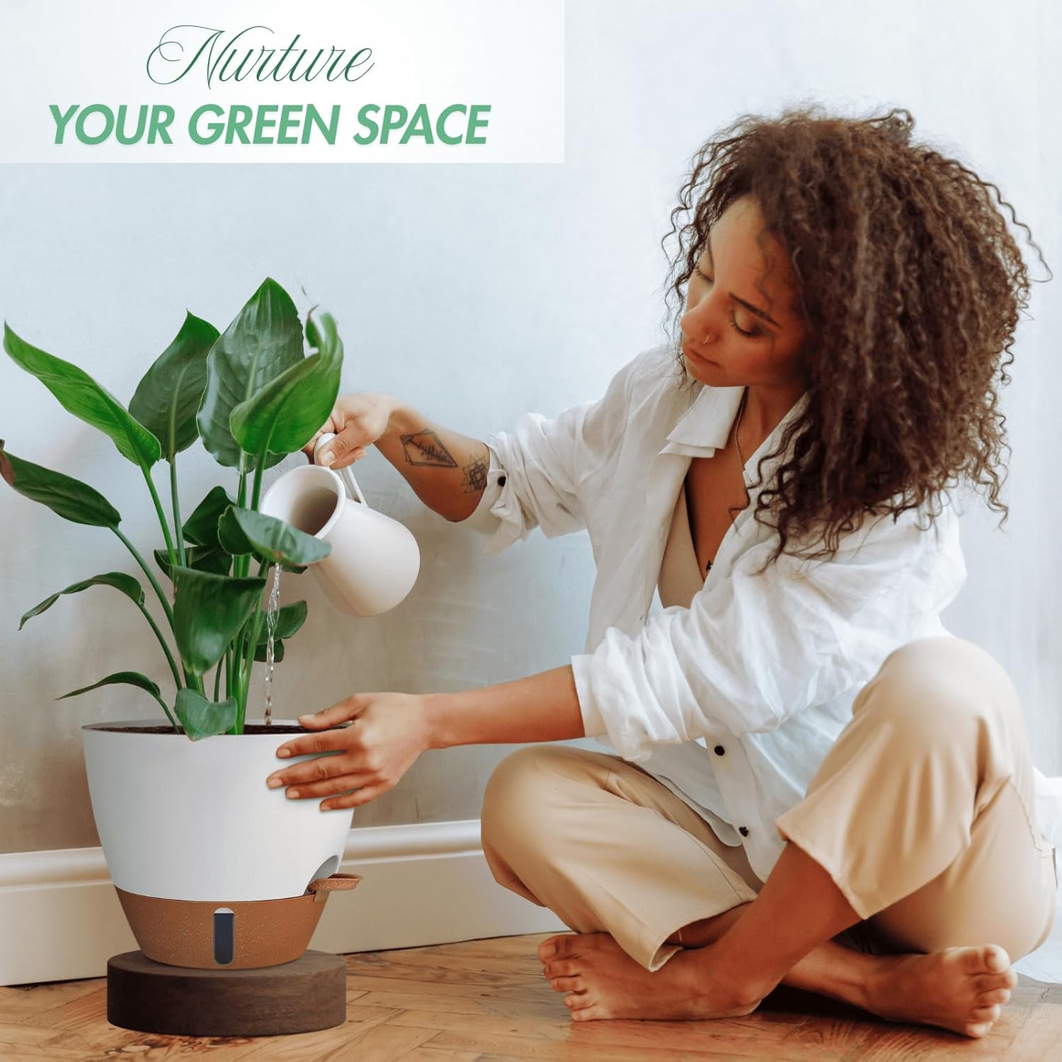 • 【Self Watering Planter for Busy Plant Parents】8/10/12-inch self-watering pots with cotton wicks auto-feed plants from the detachable reservoir. Transparent water window shows levels at a glance — maintains 5-11 days of moisture. Vacation-proof your greens, no green thumb required easy plant self watering pot.