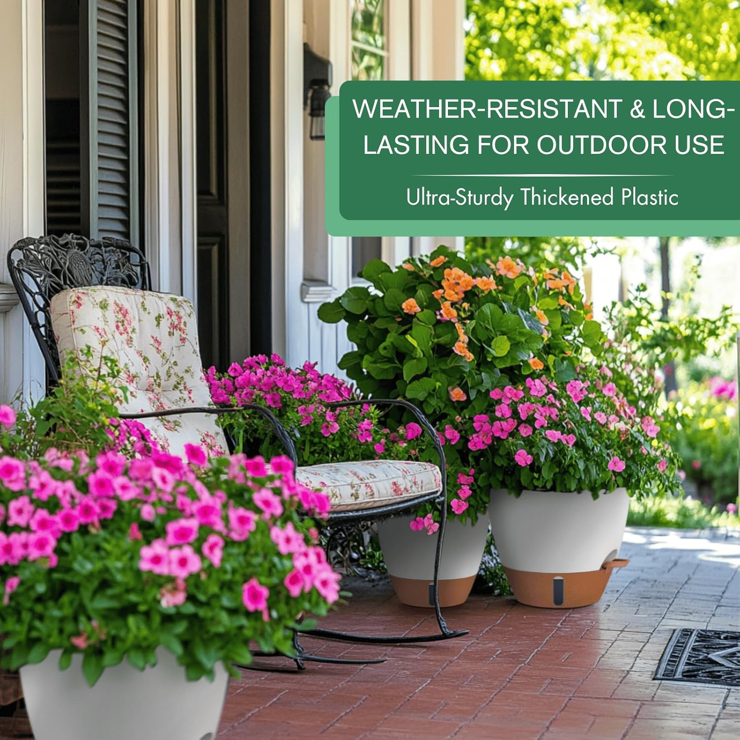 • 【Smart-Drainage Round Planter Pots】Engineered for thriving greenery, these leak-proof large planters combine smart drainage and easy maintenance. Each features multi-vent drainage holes paired with a detachable spill-proof locking tray — promoting root development through optimized airflow while protecting floors from water damage.