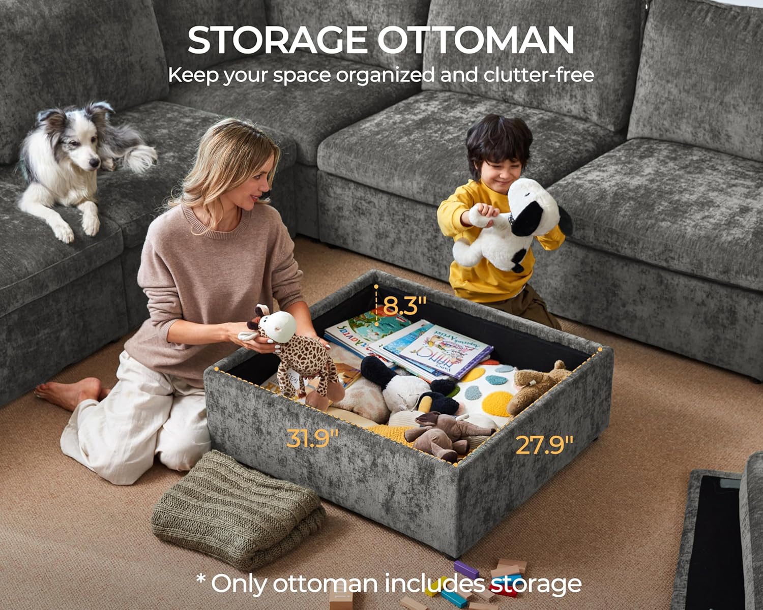 • 【Optional Hidden Storage for a Tidy Space】 Maintain a clutter-free home with the optional storage ottoman module, designed to keep blankets, pillows, or toys neatly tucked away. Convertible Couch with storage ensures essentials are always within reach yet out of sight, adding both function and style to your oversized fluffy modular sofa. Note: Storage is only available in configurations with the ottoman module