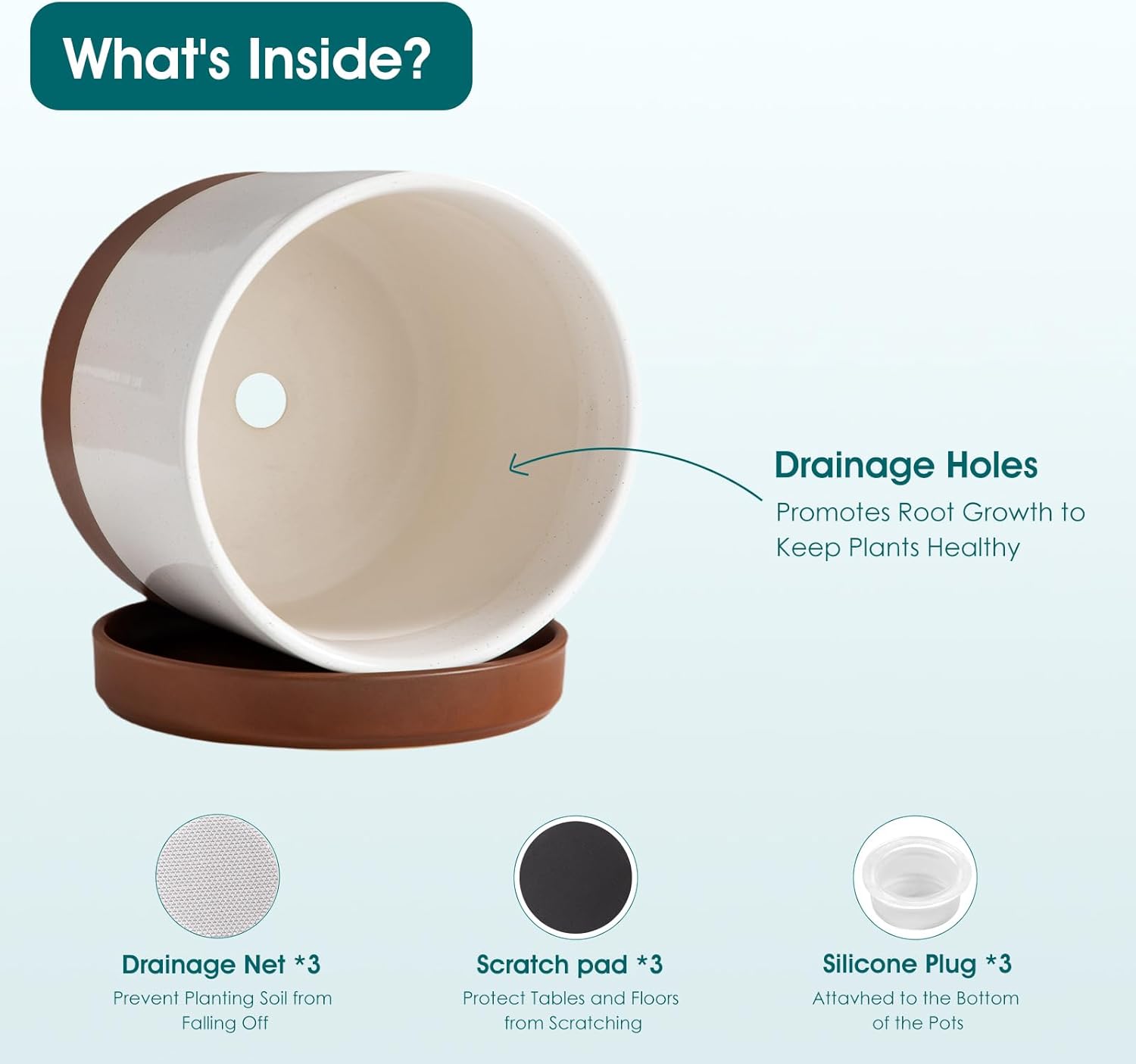• 【Stylish & Easy to Clean 】Crafted from premium natural ceramic clay and high-fired for exceptional strength, these planters for indoor plants, resist cracking, peeling, and color fading. Easy-clean surfaces simplify maintenance. they blend timeless elegance with rugged durability, making them a practical yet sophisticated upgrade for any space—and a thoughtful gift for plant lovers seeking lasting quality.