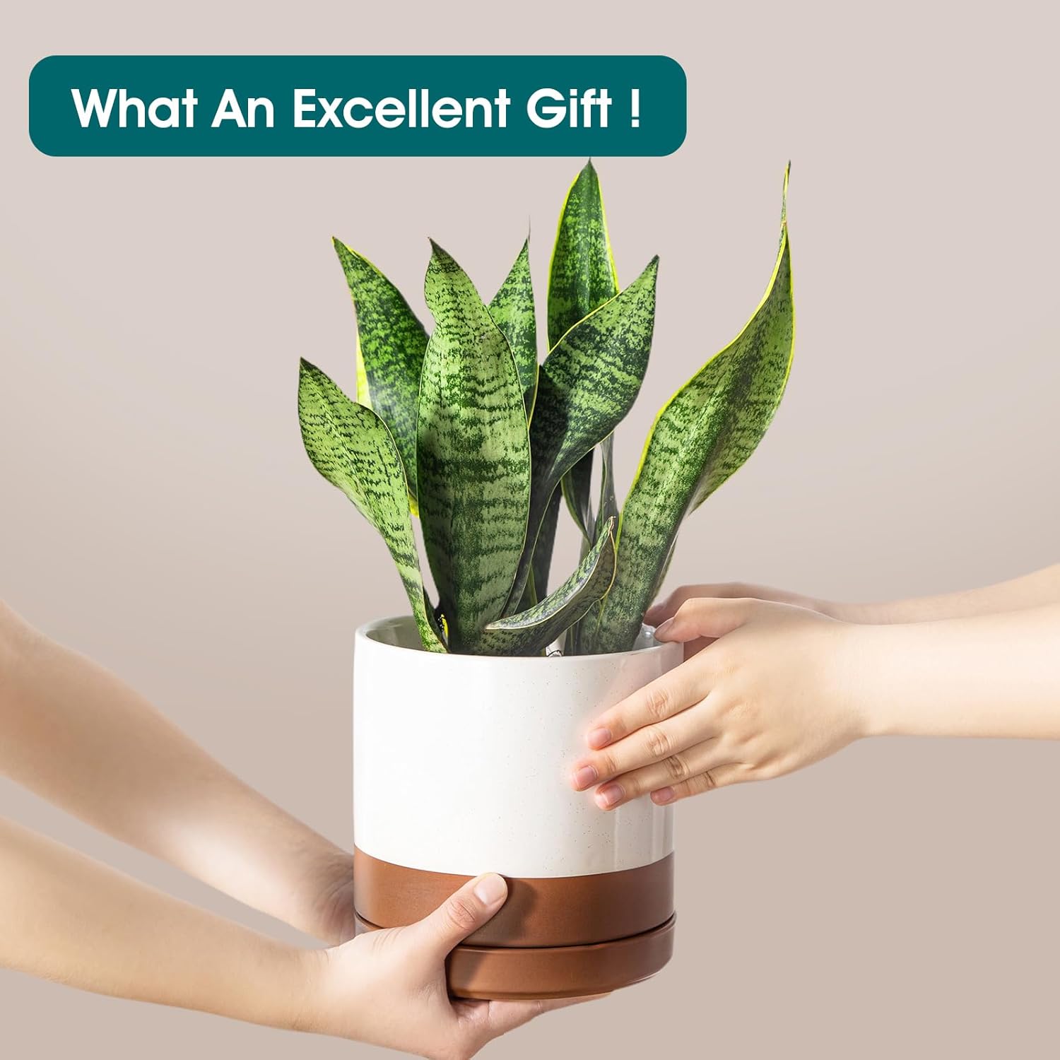 • 【Modern Ceramic Planters】 Designed with contemporary aesthetics, these plant pots feature elegant finishes in multiple colors to complement any decor—Great for decorating windowsill, shelf, tabletop, bedroom, garden, and outdoor patio. while the roomy interior accommodates medium-sized plants like flowers, pothos, monstera, africa violet, snake plant, money tree and small tree sapling.