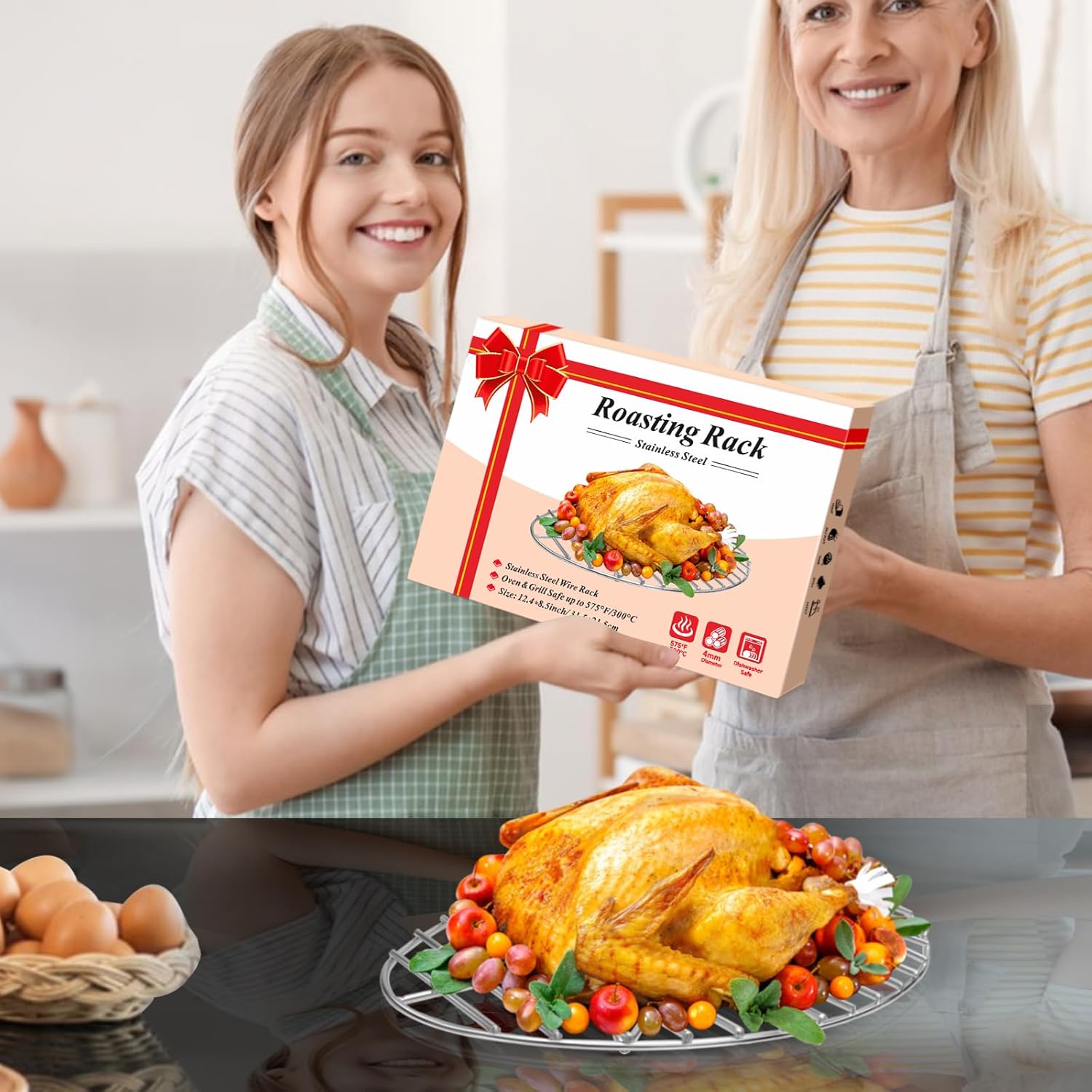 • This roasting rack comes in a beautiful package and makes a practical and elegant gift for parents, friends, and barbecue enthusiasts