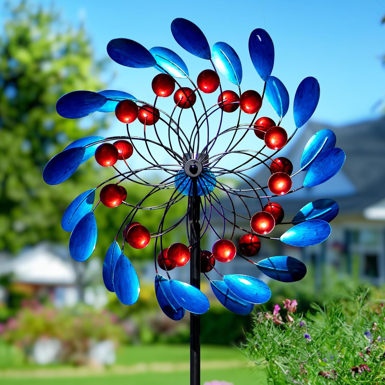 • Large Kinetic Spinner – Our windmill with a blade diameter of 24'', total height assembled 88'' from multiple sections of poles, you can adjust the height by removing the center pole. This wind sculptures stands out in any garden, yard, or patio, adding dynamic motion and dazzling light effects to your outdoor space.