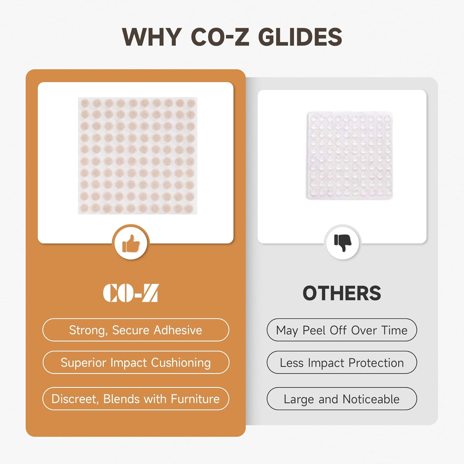 • Effortless Setup: Simply peel off the adhesive backing, press firmly onto any clean surface, and you're done! No tools are needed—just quick and easy protection for your furniture